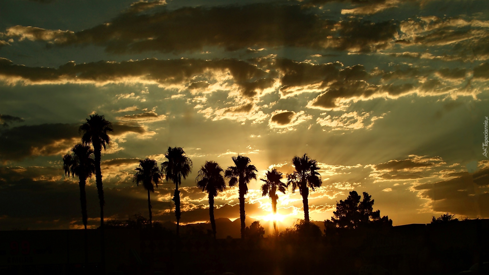 Edytor tapety: Zachód, Słońca, Niebo, Chmury, Palmy