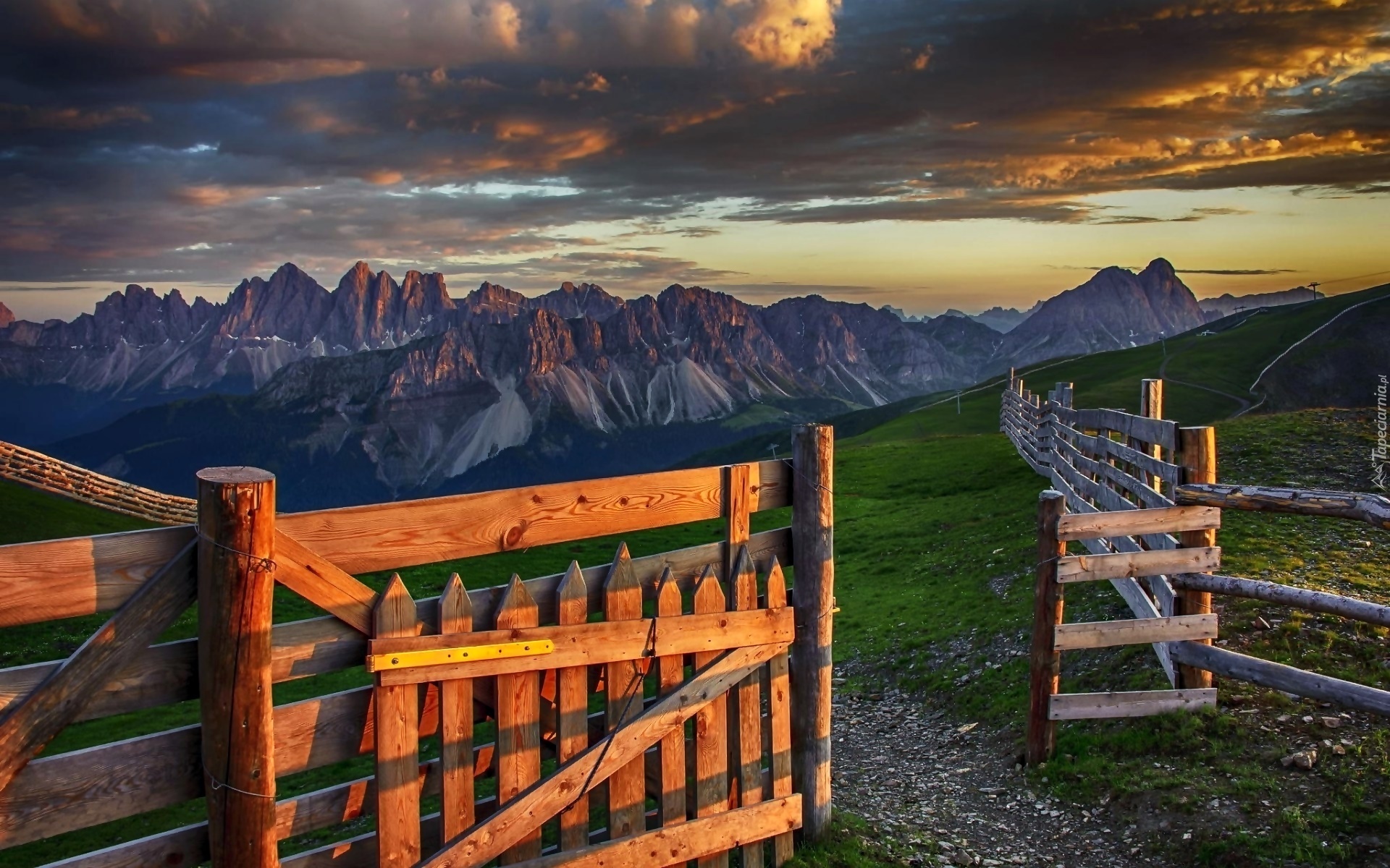 Edytor tapety: Góry, Łąki, Ogrodzenie, Płot
