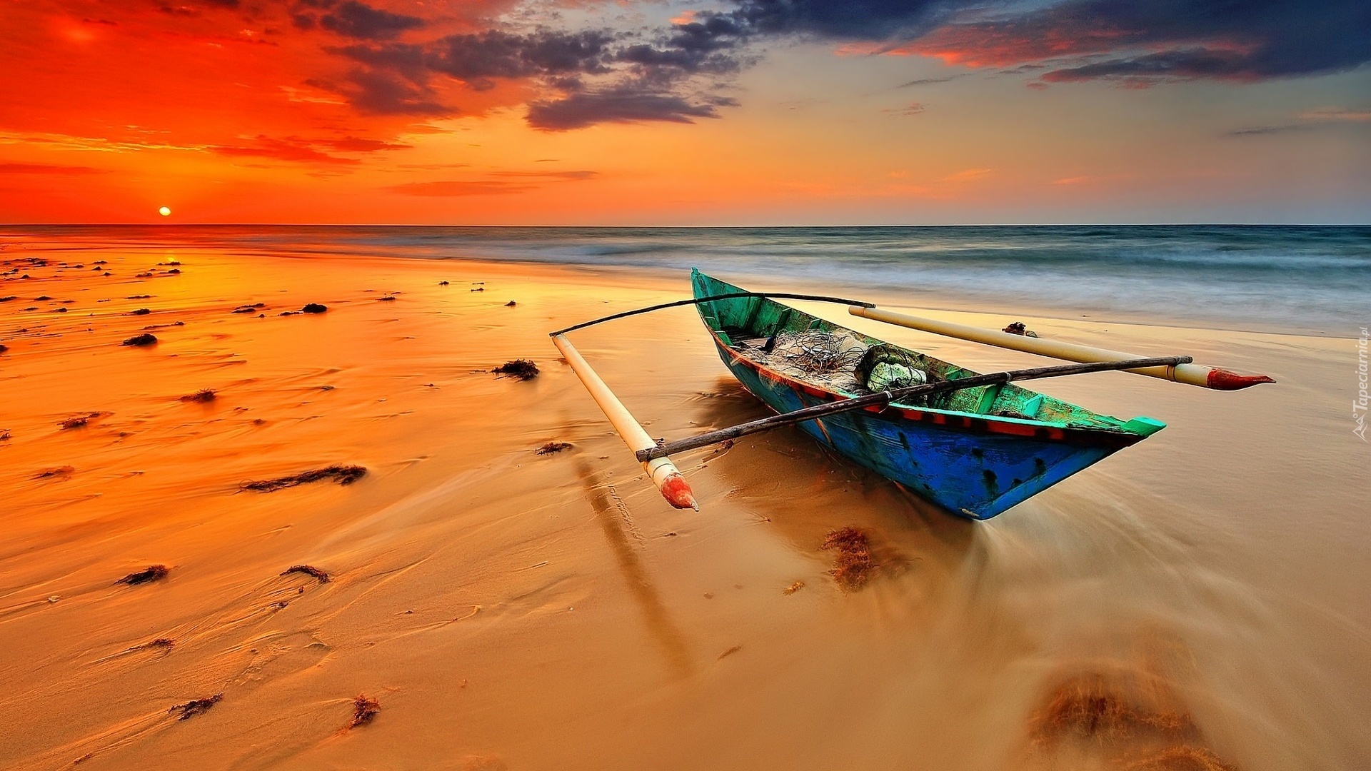 Edytor tapety: Morze, Plaża, Piasek, Zachód, Słońca, Łódka