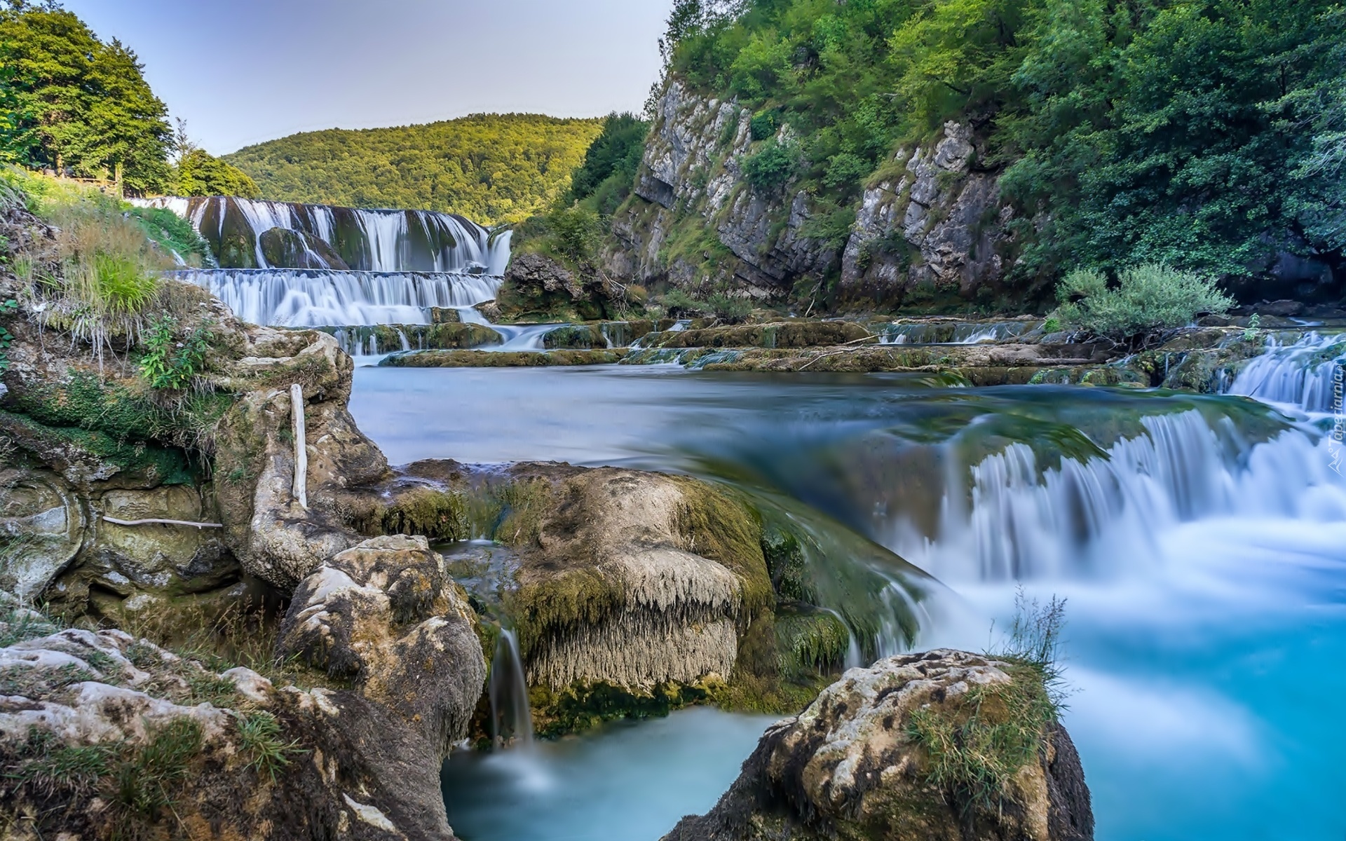 Edytor tapety: Wodospad, Skały, Góry, Drzewa, Bośnia, Hercegowina