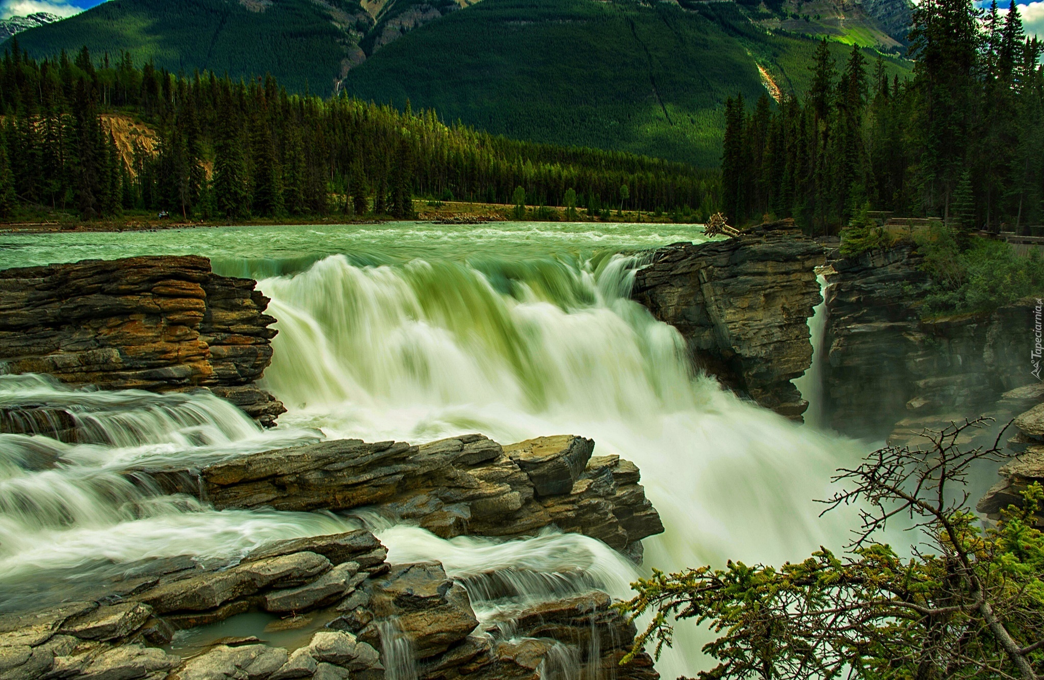Edytor tapety: Wodospad, Rzeka, Skały, Kamienie, Krajobraz