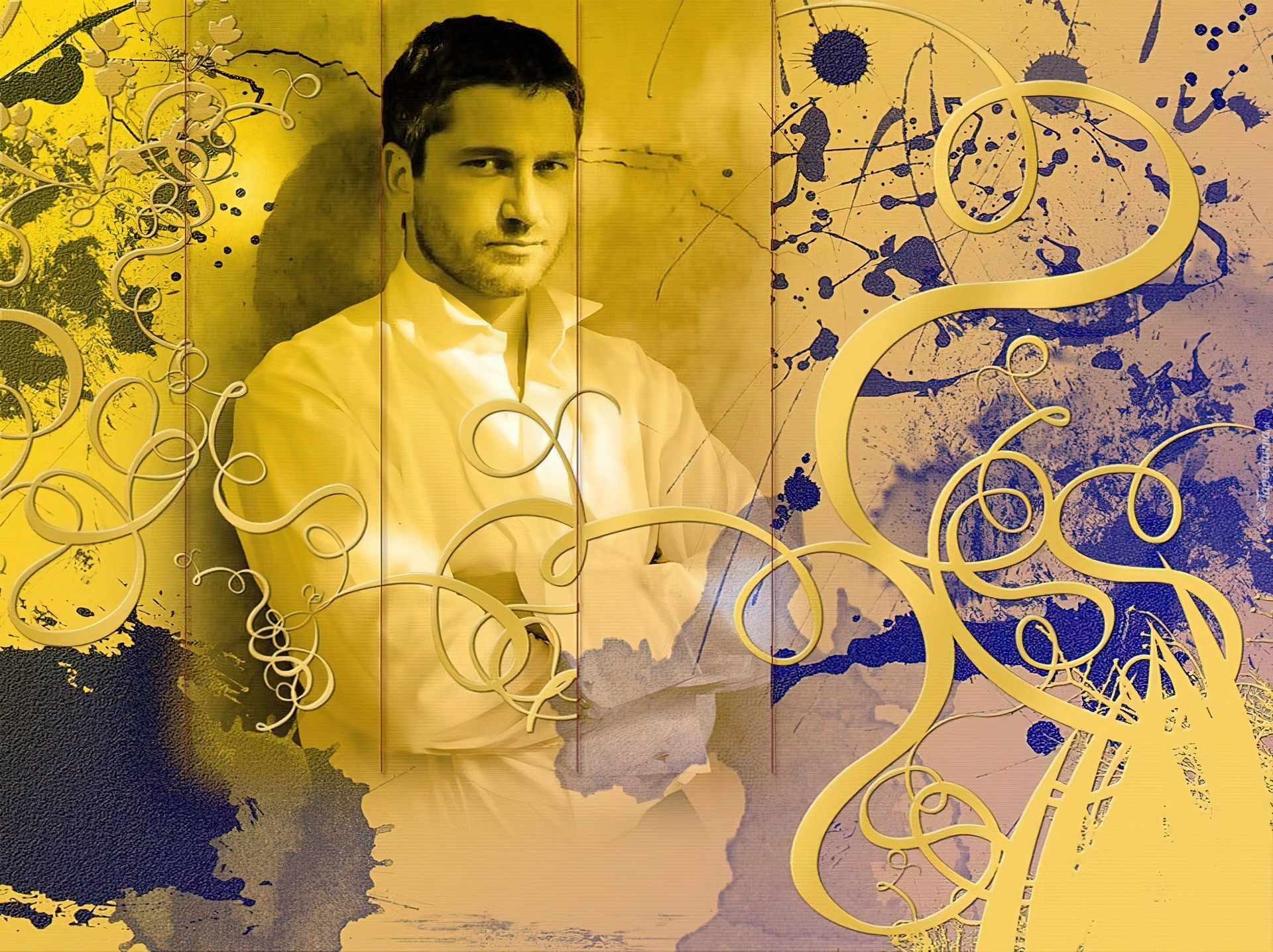 Edytor tapety: Gerard Butler,biała koszula