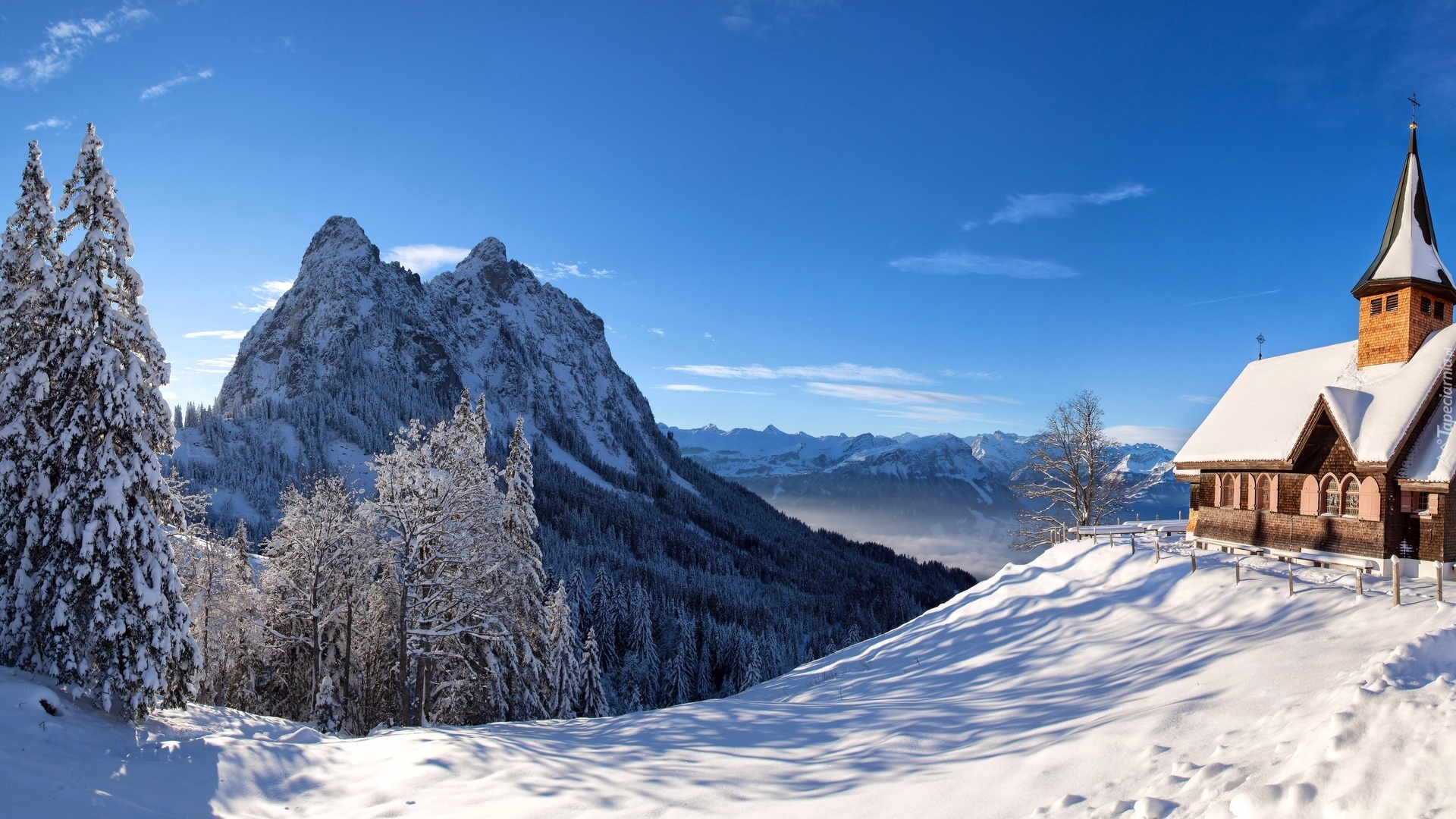 Edytor tapety: Zima, Góry, Kościół