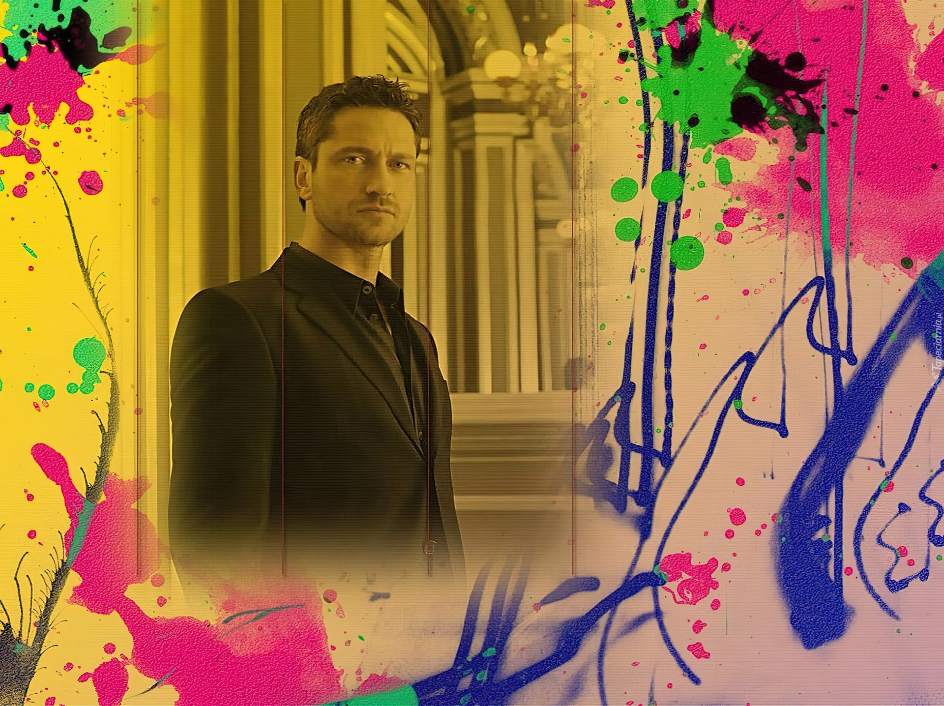 Edytor tapety: Gerard Butler,czarny strój