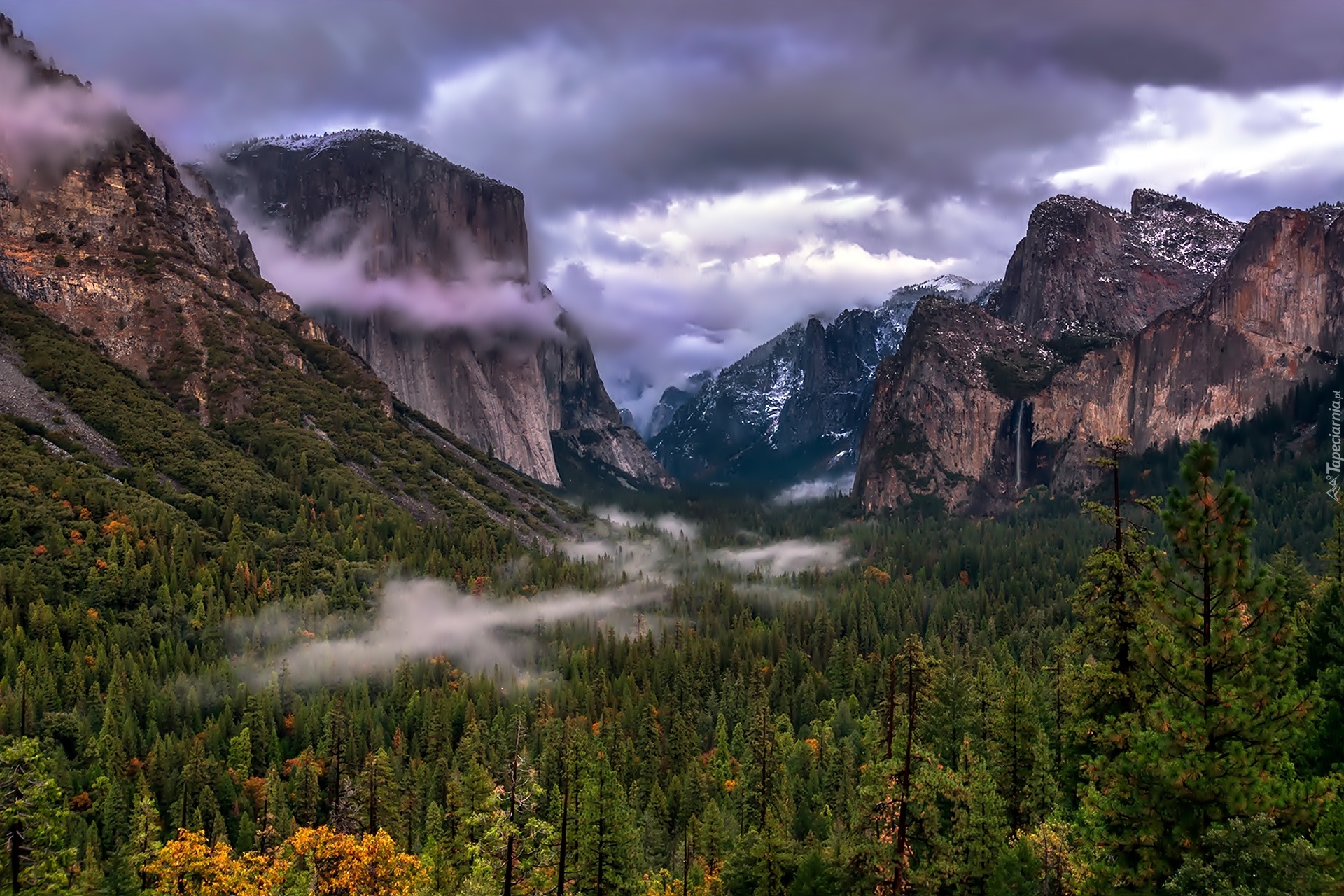 Edytor tapety: Stany Zjednoczone, Stan Kalifornia, Park Narodowy Yosemite, Góry, Lasy, Chmury