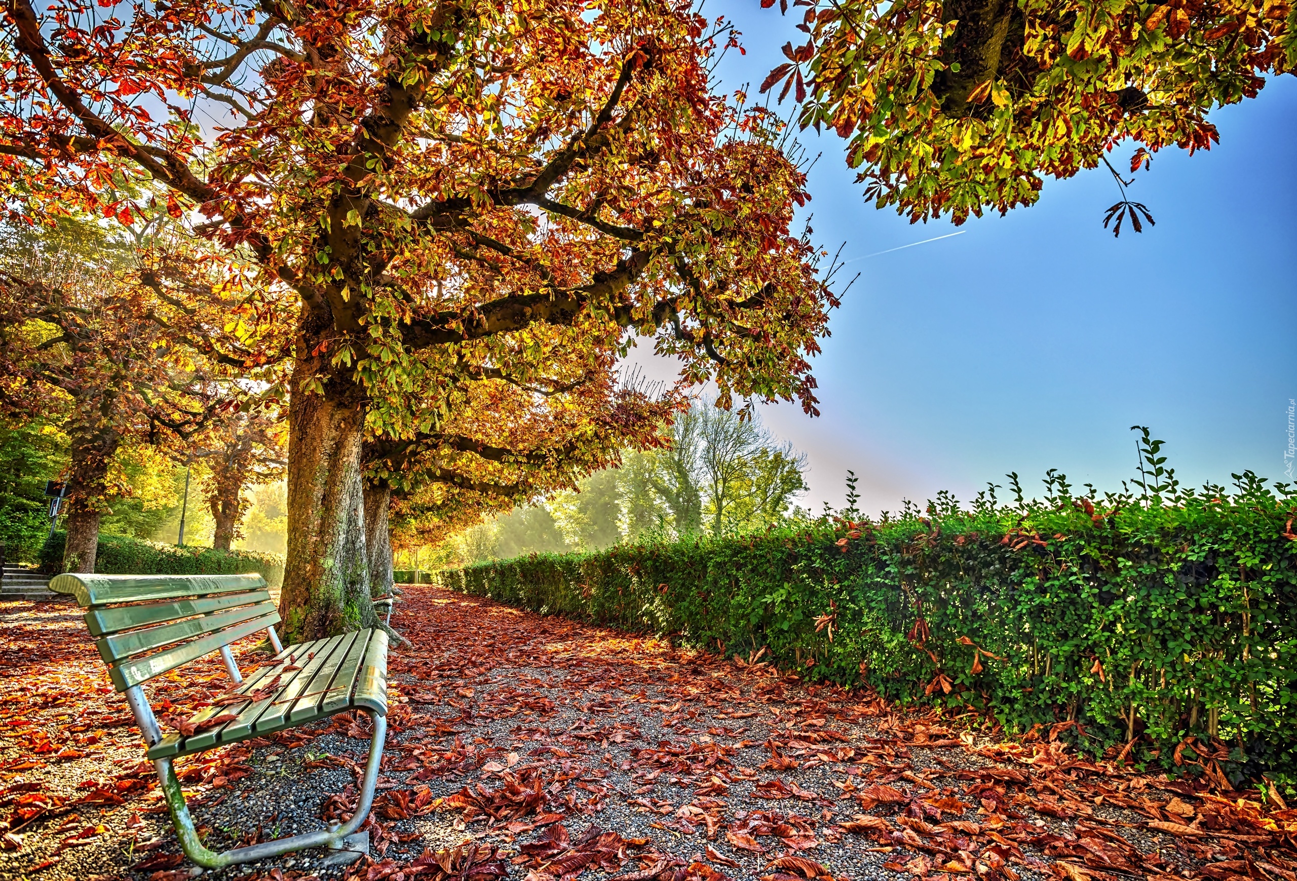 Edytor tapety: Jesień, Park, Alejka, Ławka, Liście