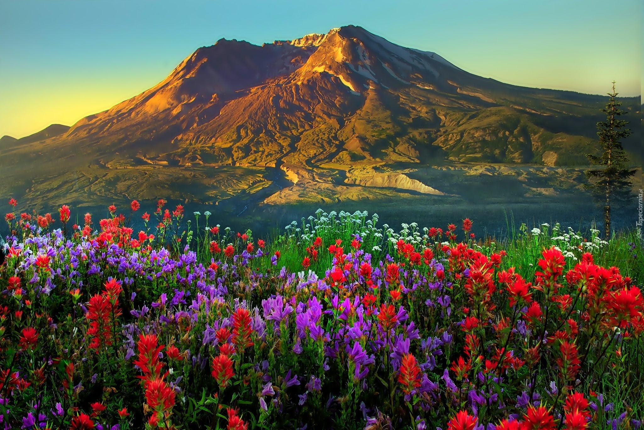 Edytor tapety: Góry, Łąka, Kwiaty