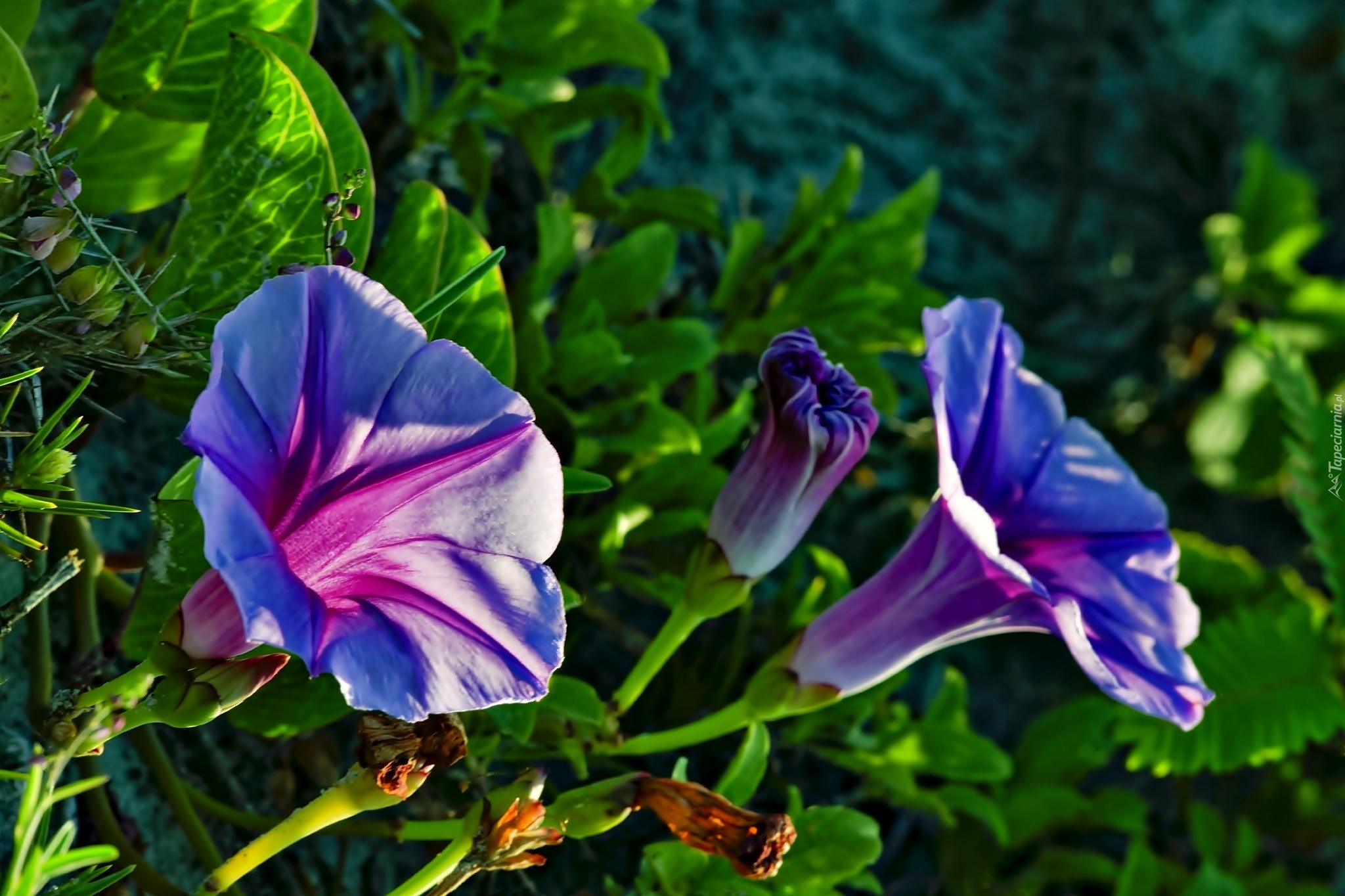 Edytor tapety: Powój, Kwiaty, Liście, Światło
