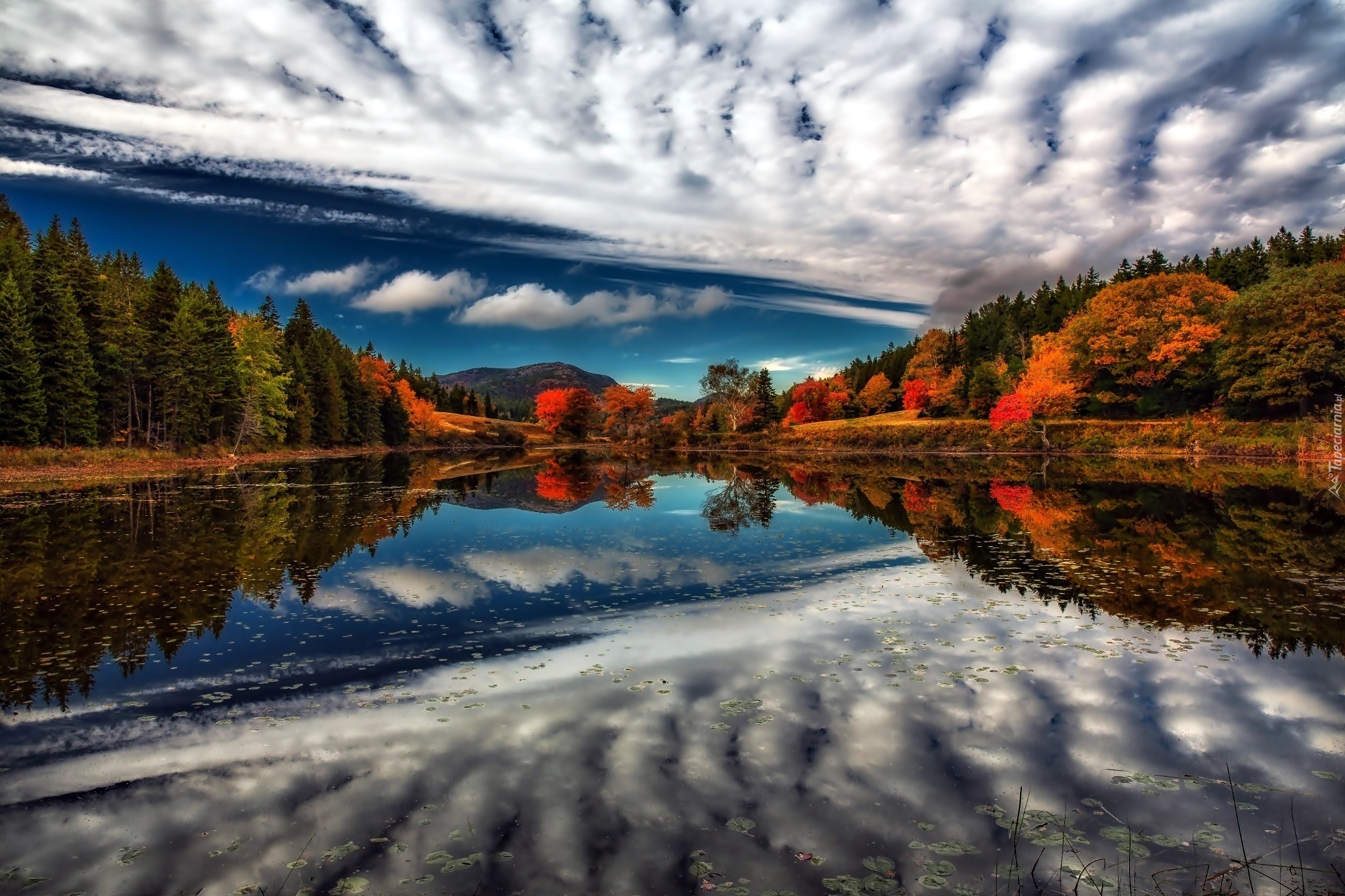 Edytor tapety: Jesień, Rzeka, Chmury, Lasy, Odbicie