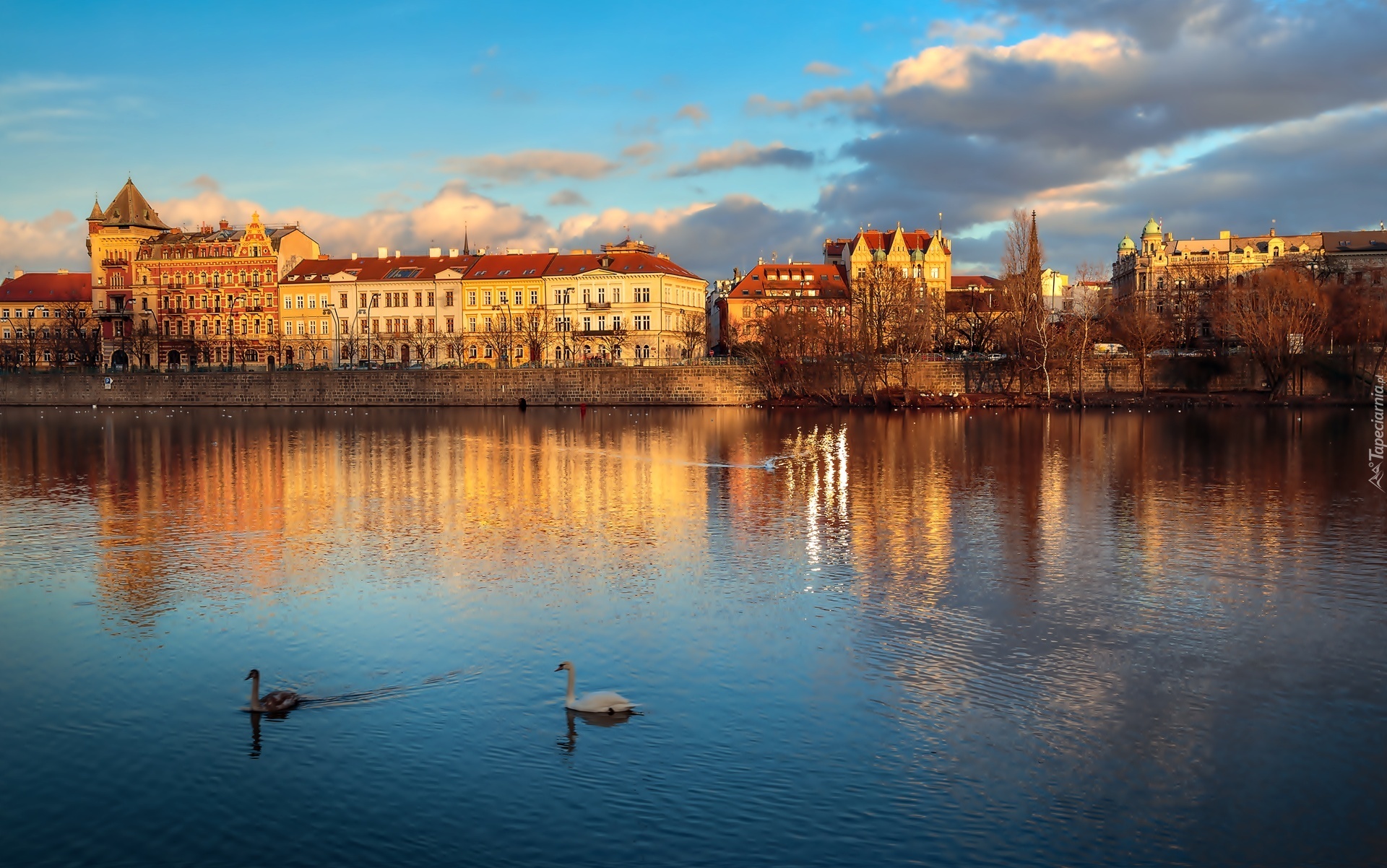 Edytor tapety: Czechy, Praga, Rzeka, Łabędzie