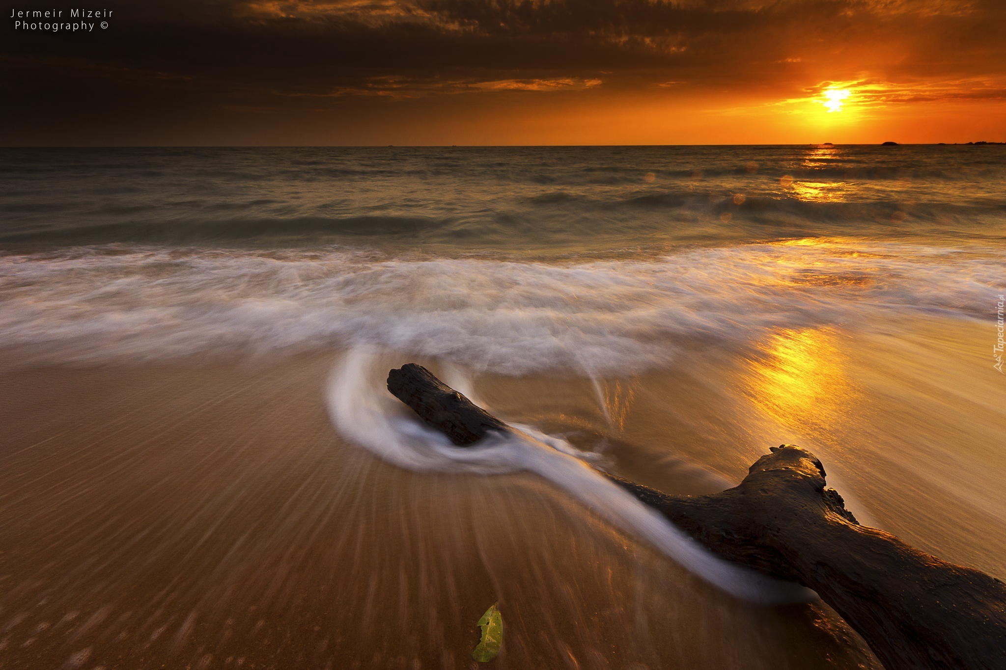 Edytor tapety: Zachód Słońca, Morze, Plaża, Konar