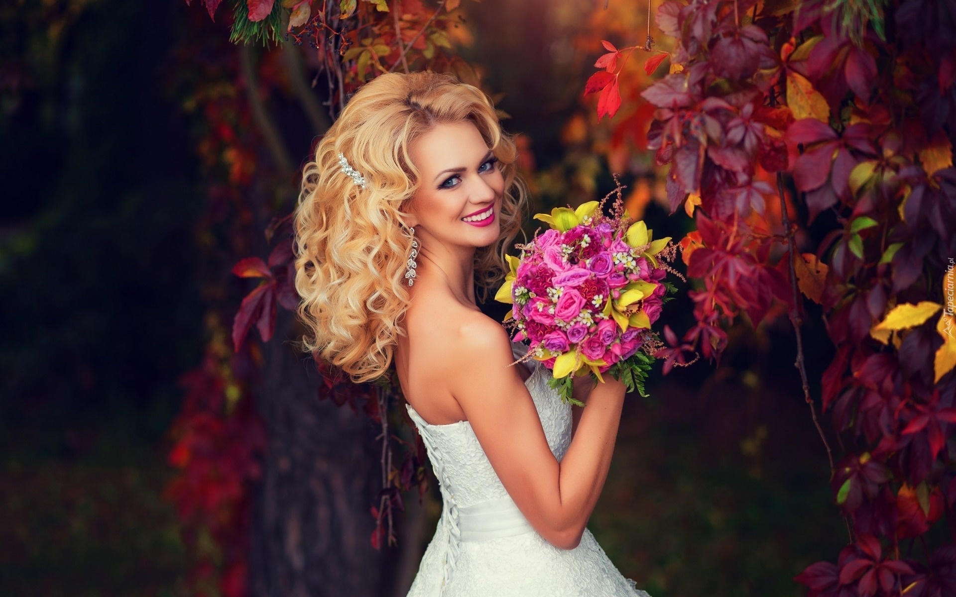 Edytor tapety: Panna, Młoda, Ślub, Bukiet, Kwiaty, Liście