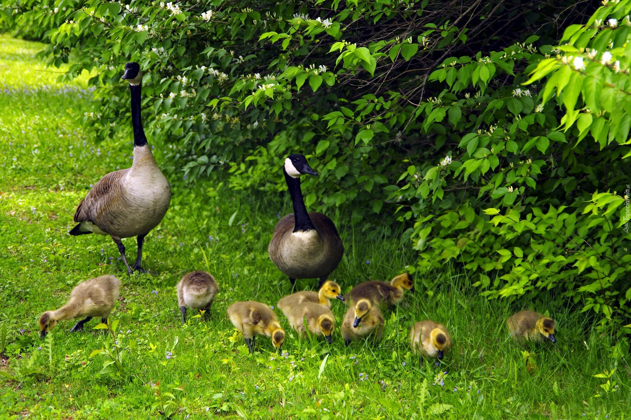 Edytor tapety: Gęsi, Pisklęta, Stadko