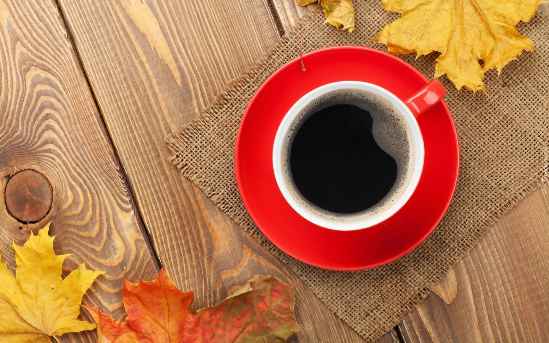Edytor tapety: Filiżanka, Kawy, Jesienne, Liście, Kompozycja