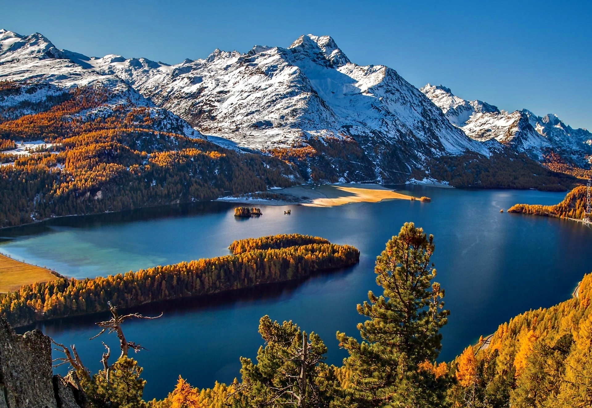 Edytor tapety: Góry, Jezioro, Wysepki, Jesień