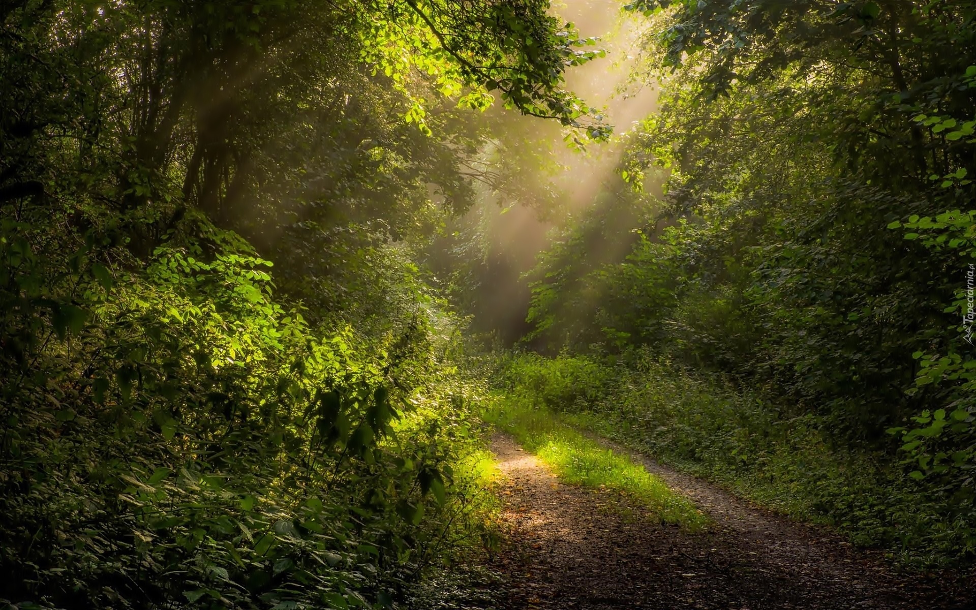 Edytor tapety: Las, Droga, Drzewa, Przebijające, Światło