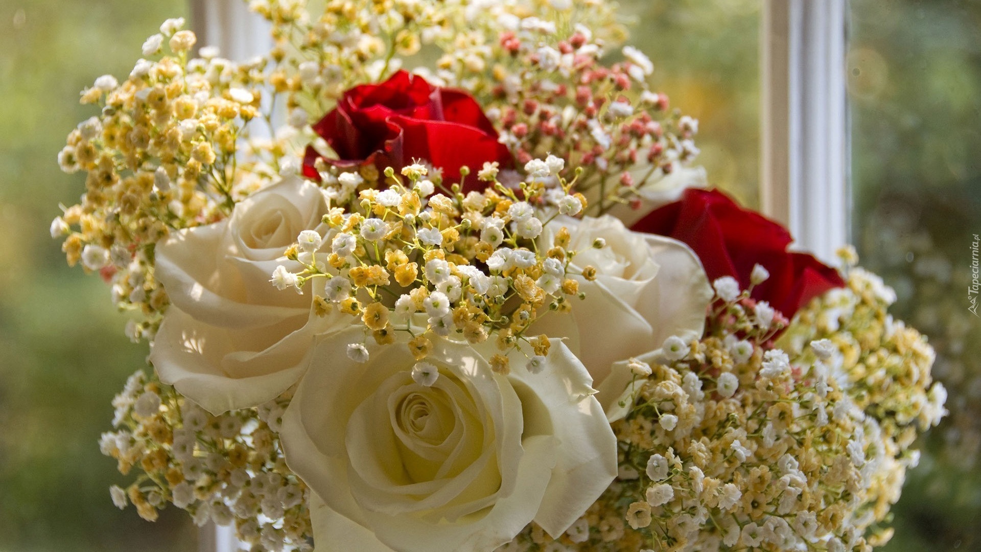 Edytor tapety: Białe, Czerwone, Kwiaty, Róże