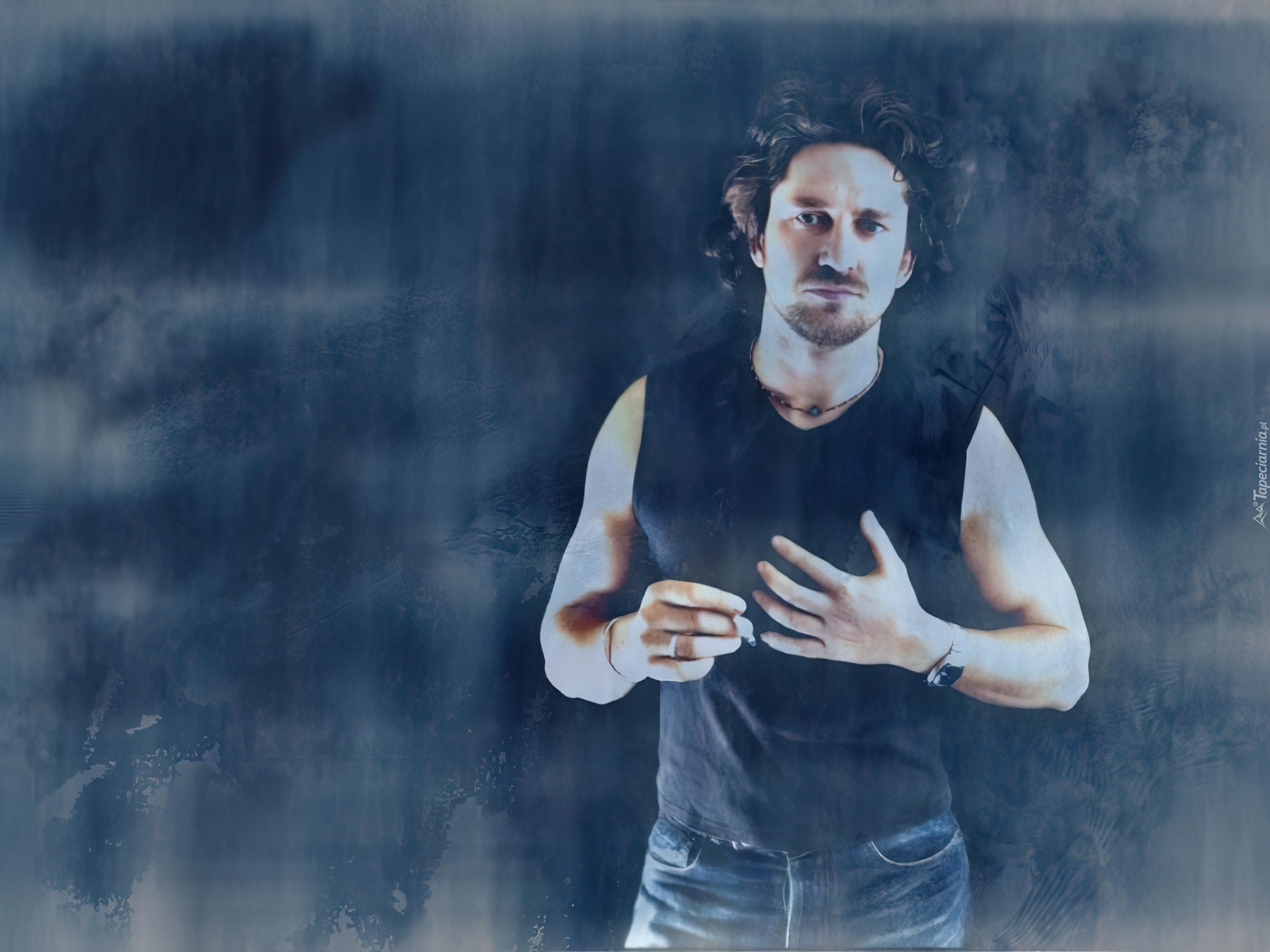 Edytor tapety: Gerard Butler,kręcone włosy, czarna koszulka