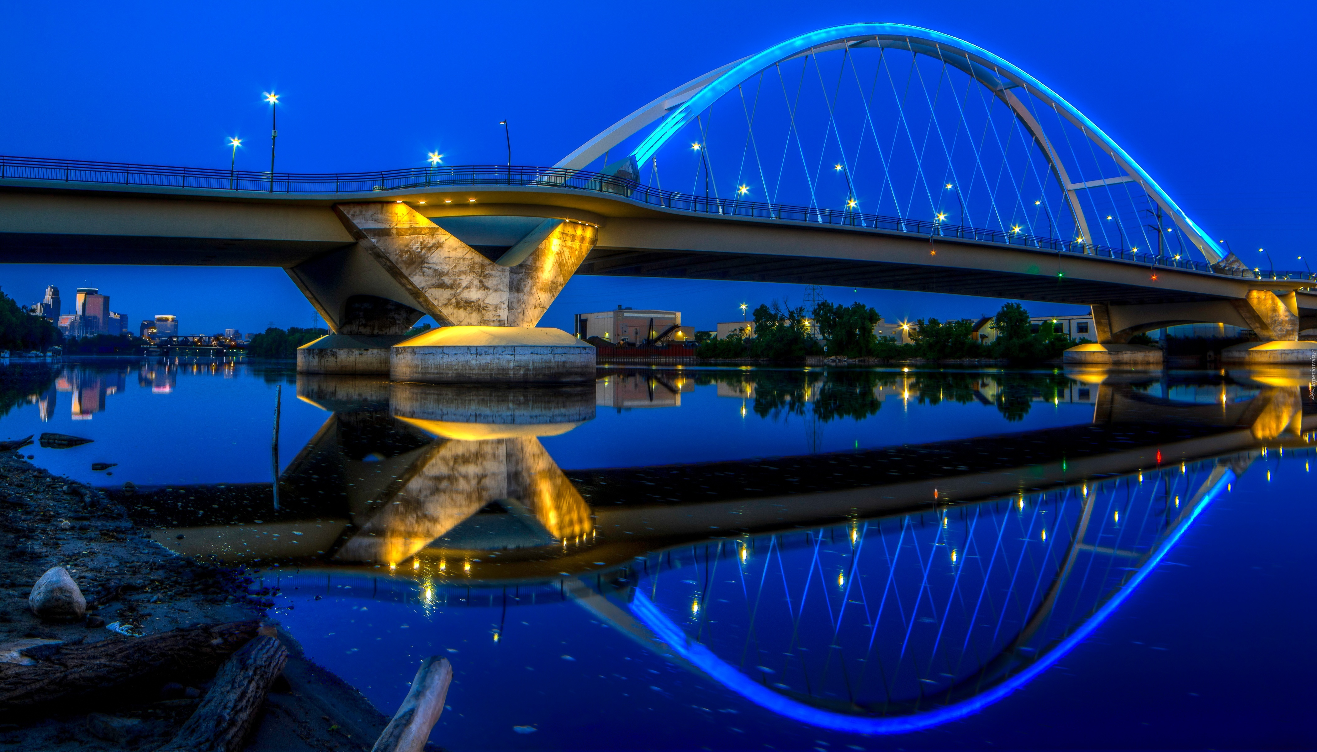 Edytor tapety: Most, Na, Rzece, Missisipi, Oświetlenie, Noc, USA
