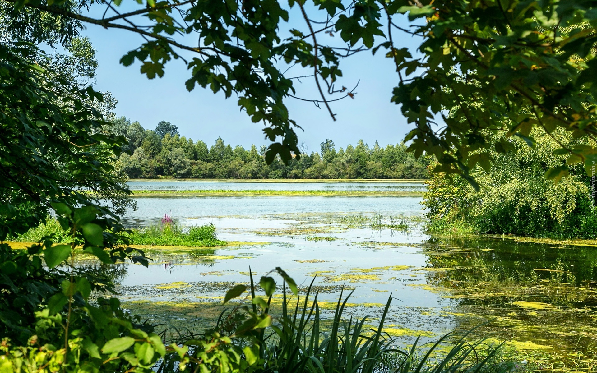 Edytor tapety: Jezioro, Rośliny, Drzewa, Lato