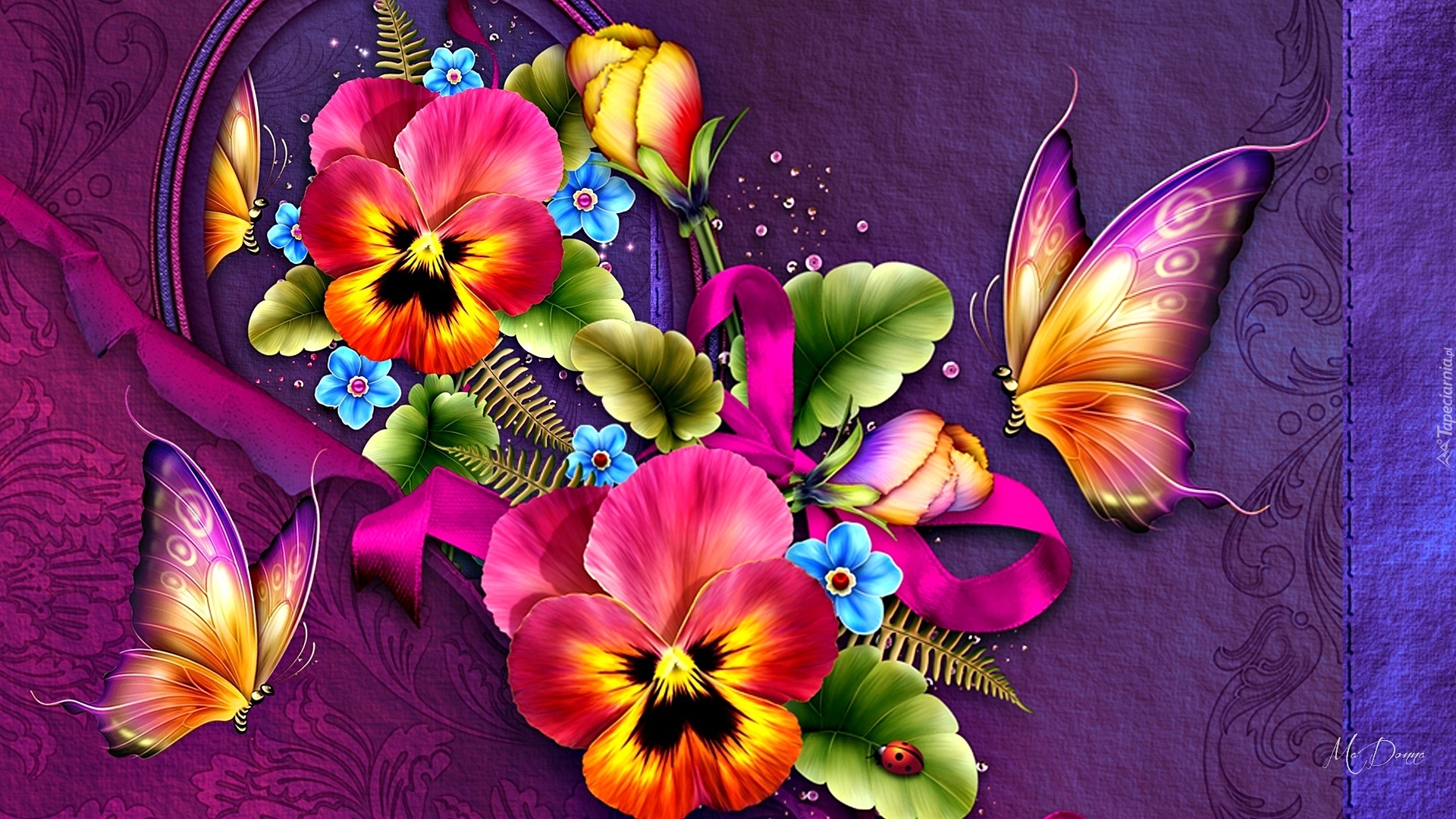 Edytor tapety: Kolorowe, Bratki, Motyle, Art