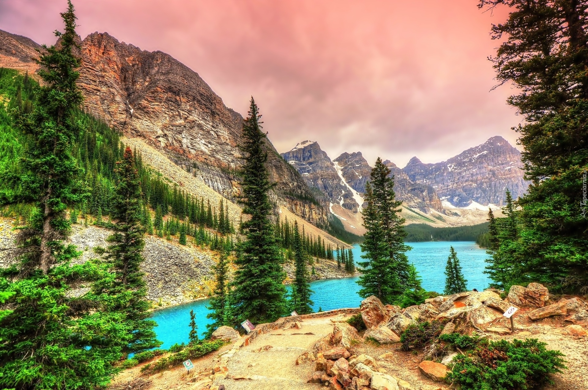 Edytor tapety: Góry, Jezioro, Las, Kamienie