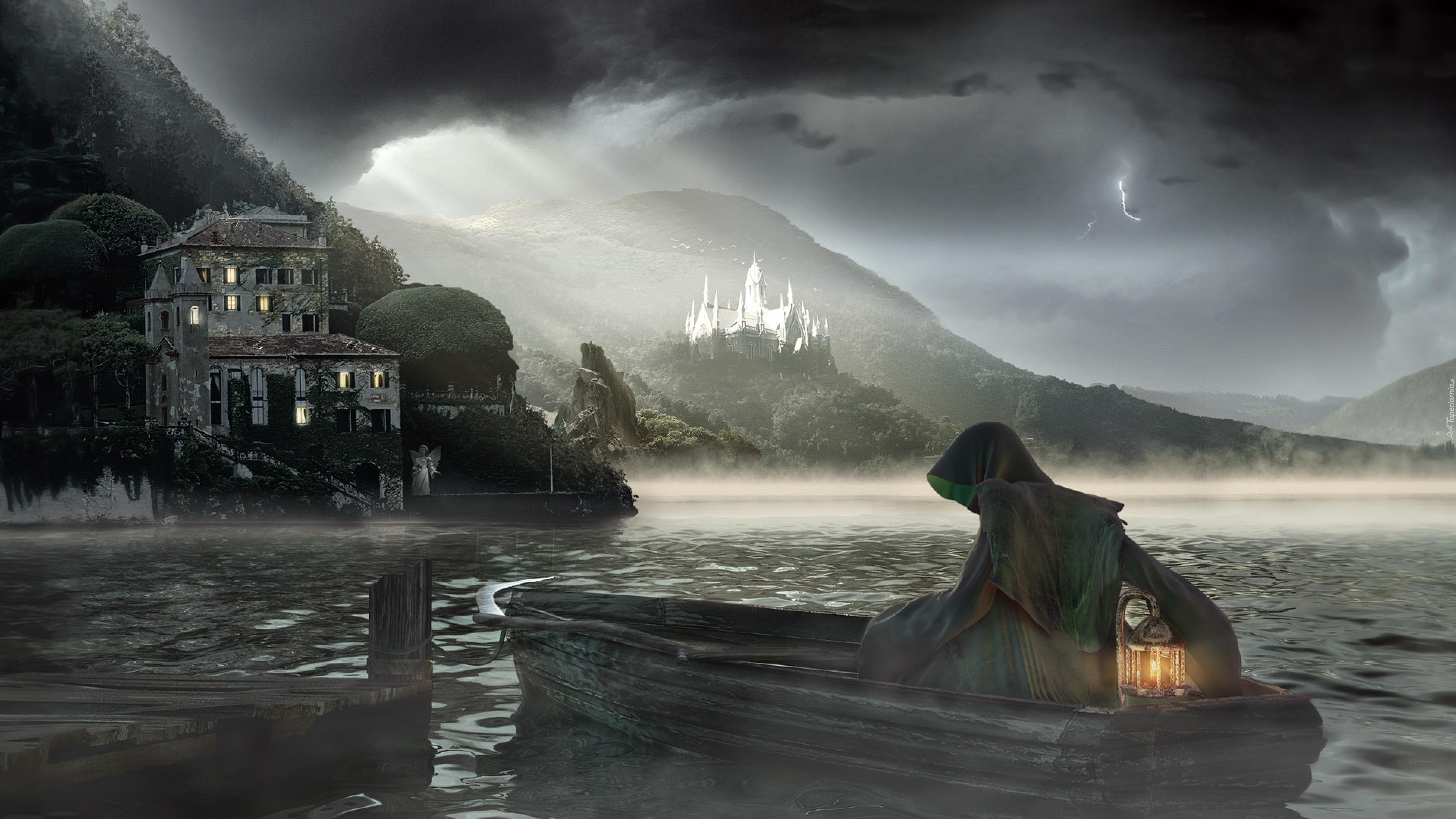 Edytor tapety: Postać, Zakapturzona, Łódka, Woda