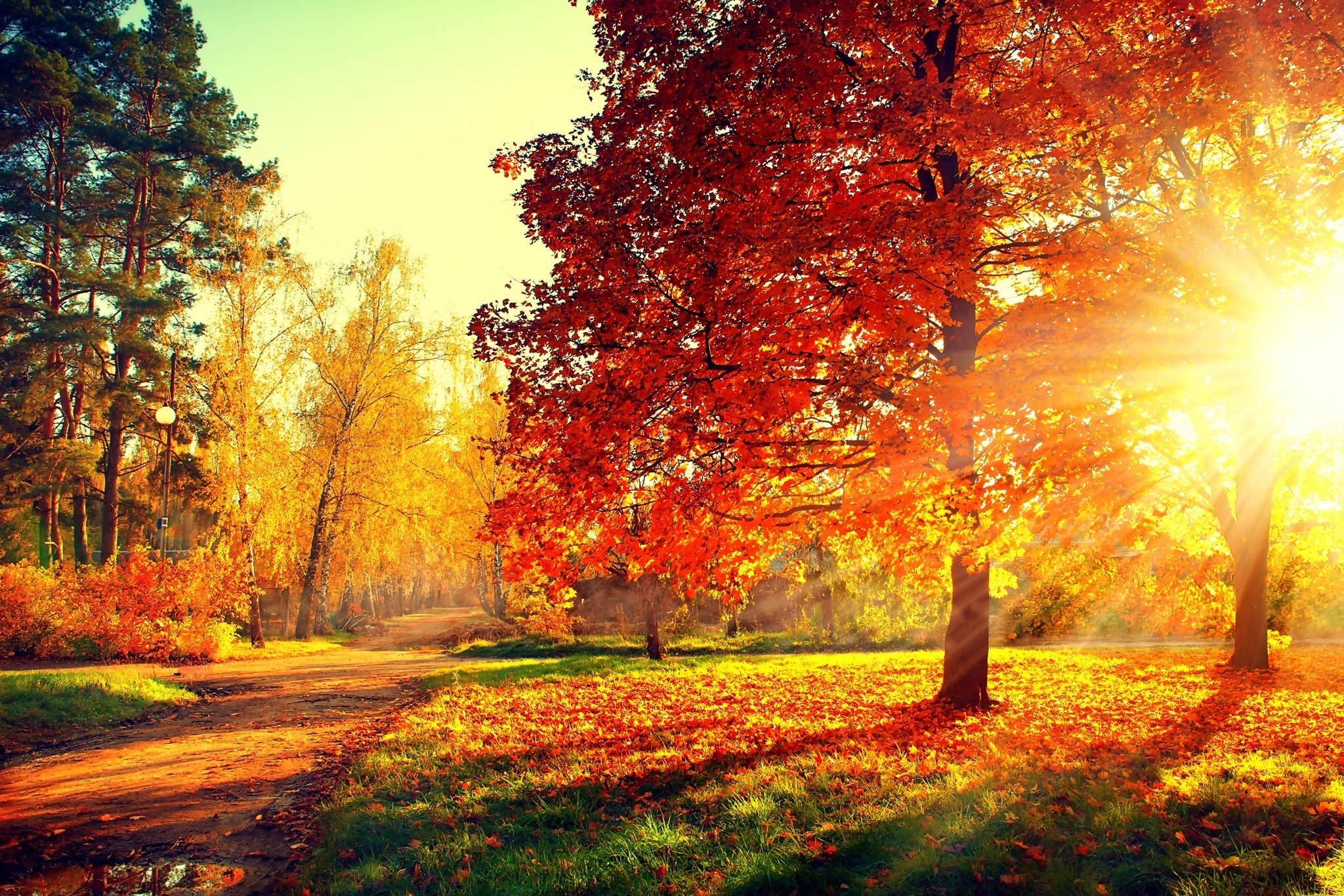 Edytor tapety: Jesień, Park, Aleja, Drzewa, Promienie Słońca