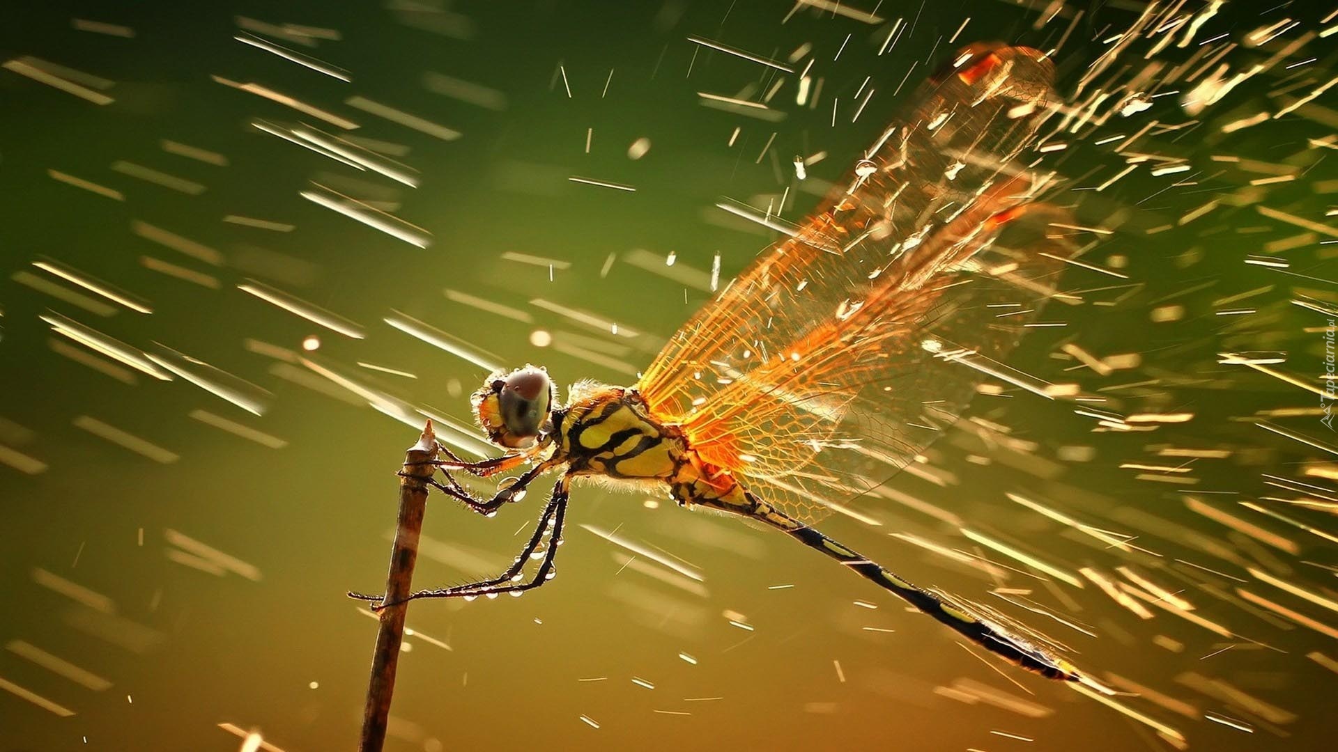 Edytor tapety: Ważka, Deszcz, Makro