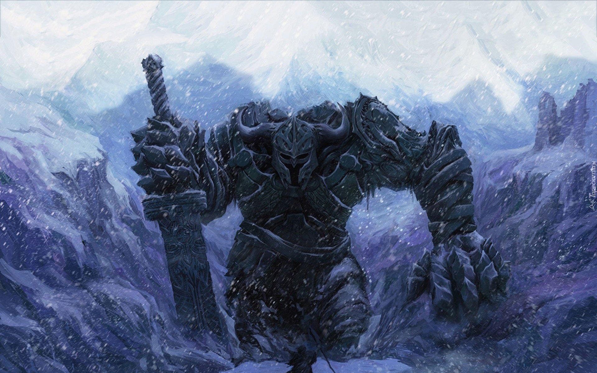 Edytor tapety: Śnieżyca, Góry, Olbrzym, Miecz