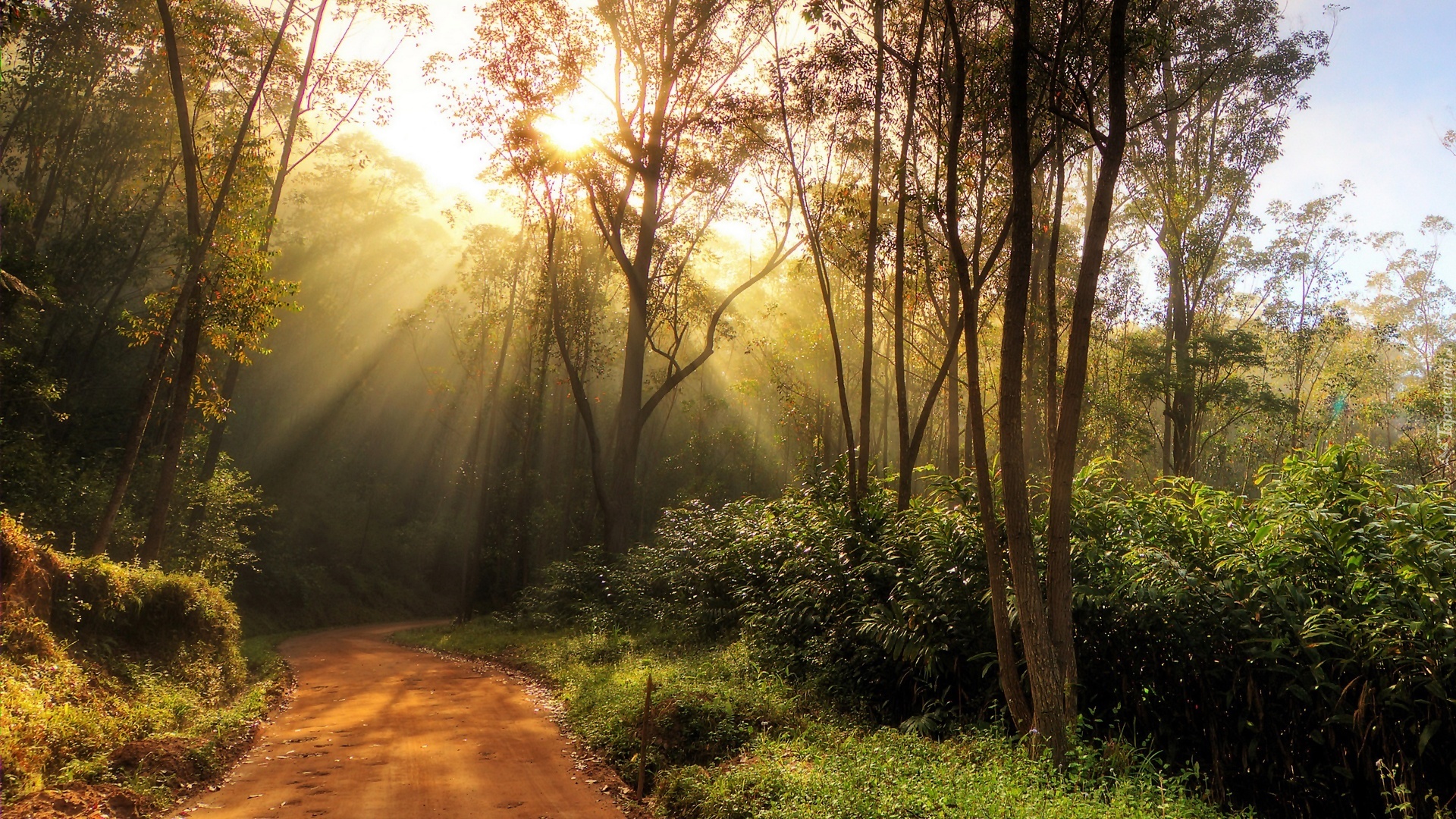 Edytor tapety: Droga, Las, Promienie, Słońca