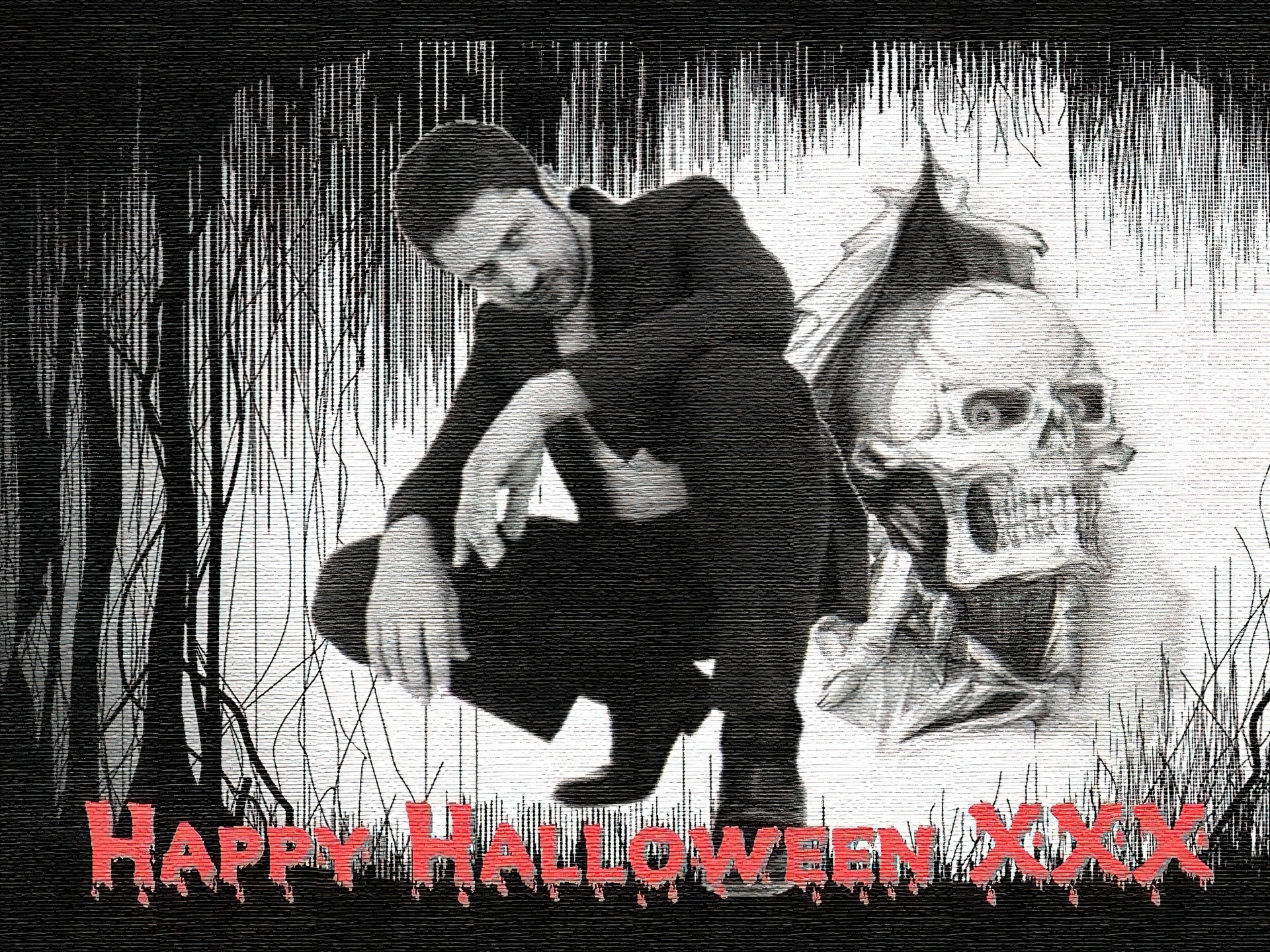 Edytor tapety: Gerard Butler,czarny strój, czaszka