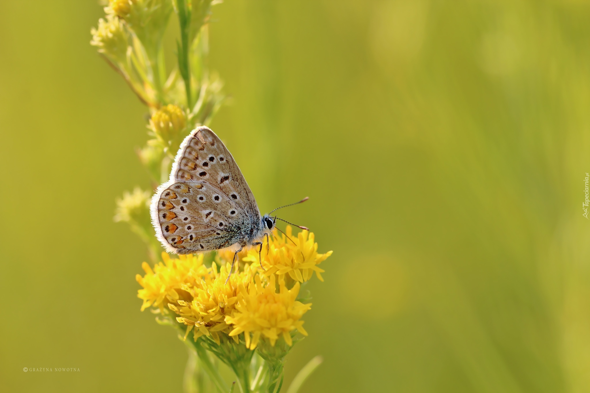 Edytor tapety: Motyl, Modraszek, Żółte, Kwiaty, Owad