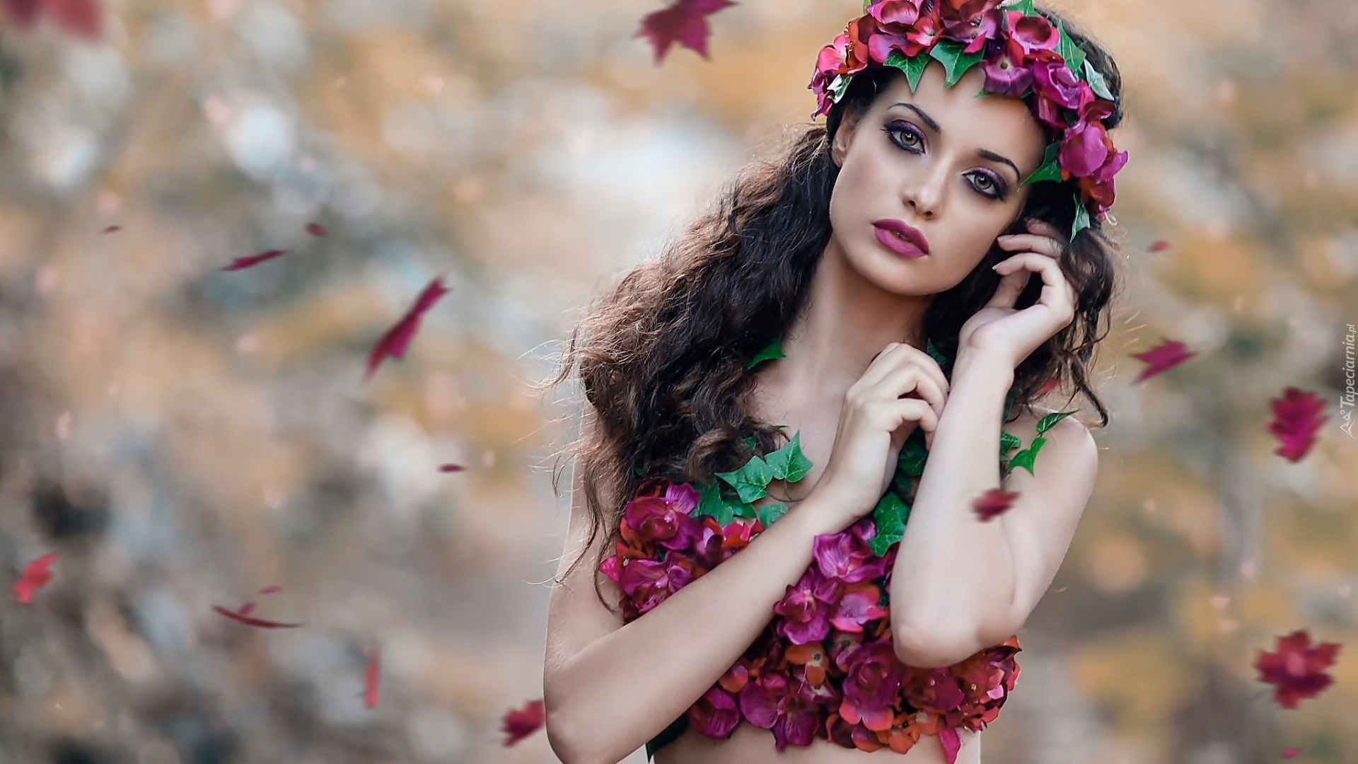 Edytor tapety: Brunetka, Kwiaty, Liście