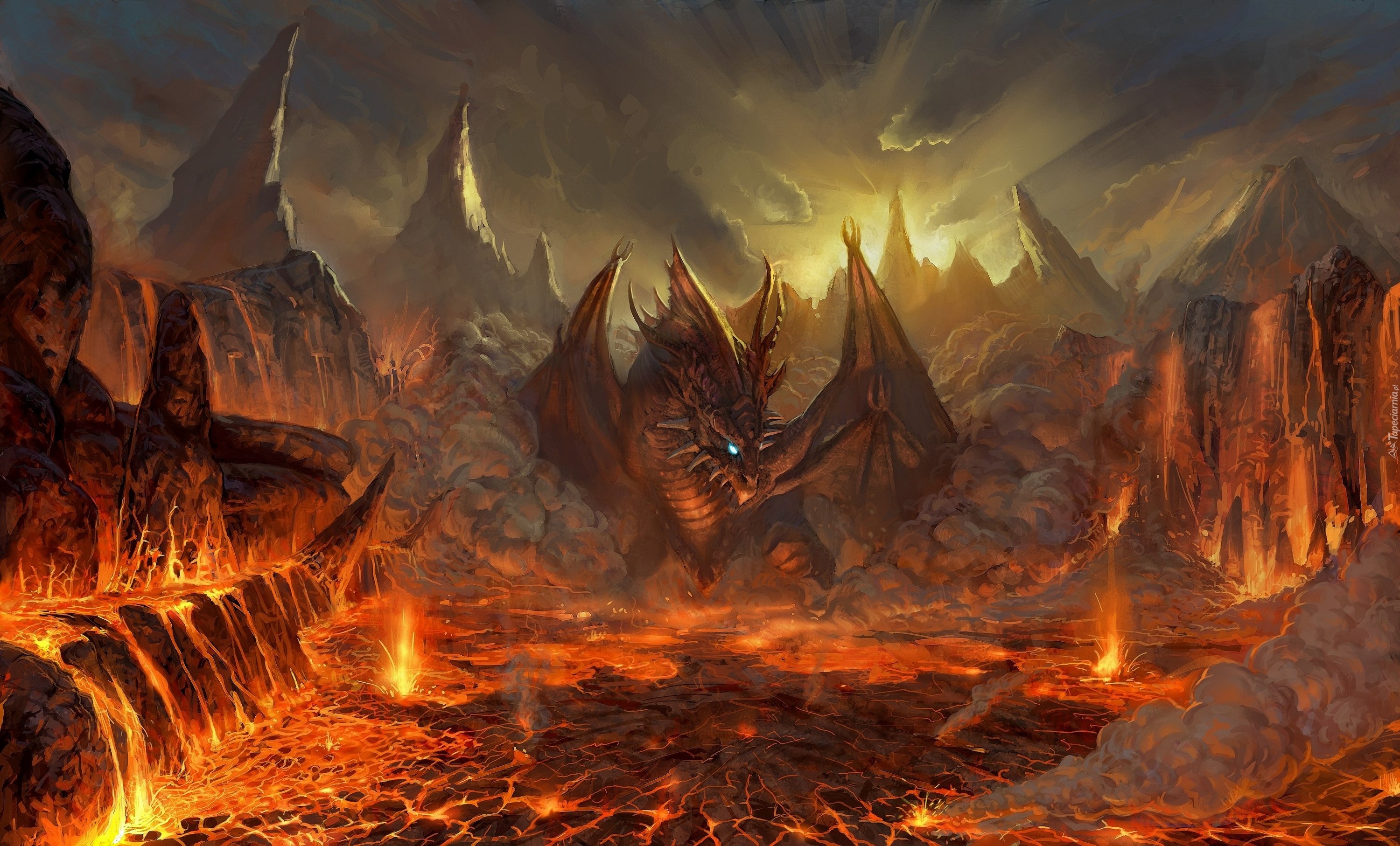 Edytor tapety: Smok, Skały, Lawa