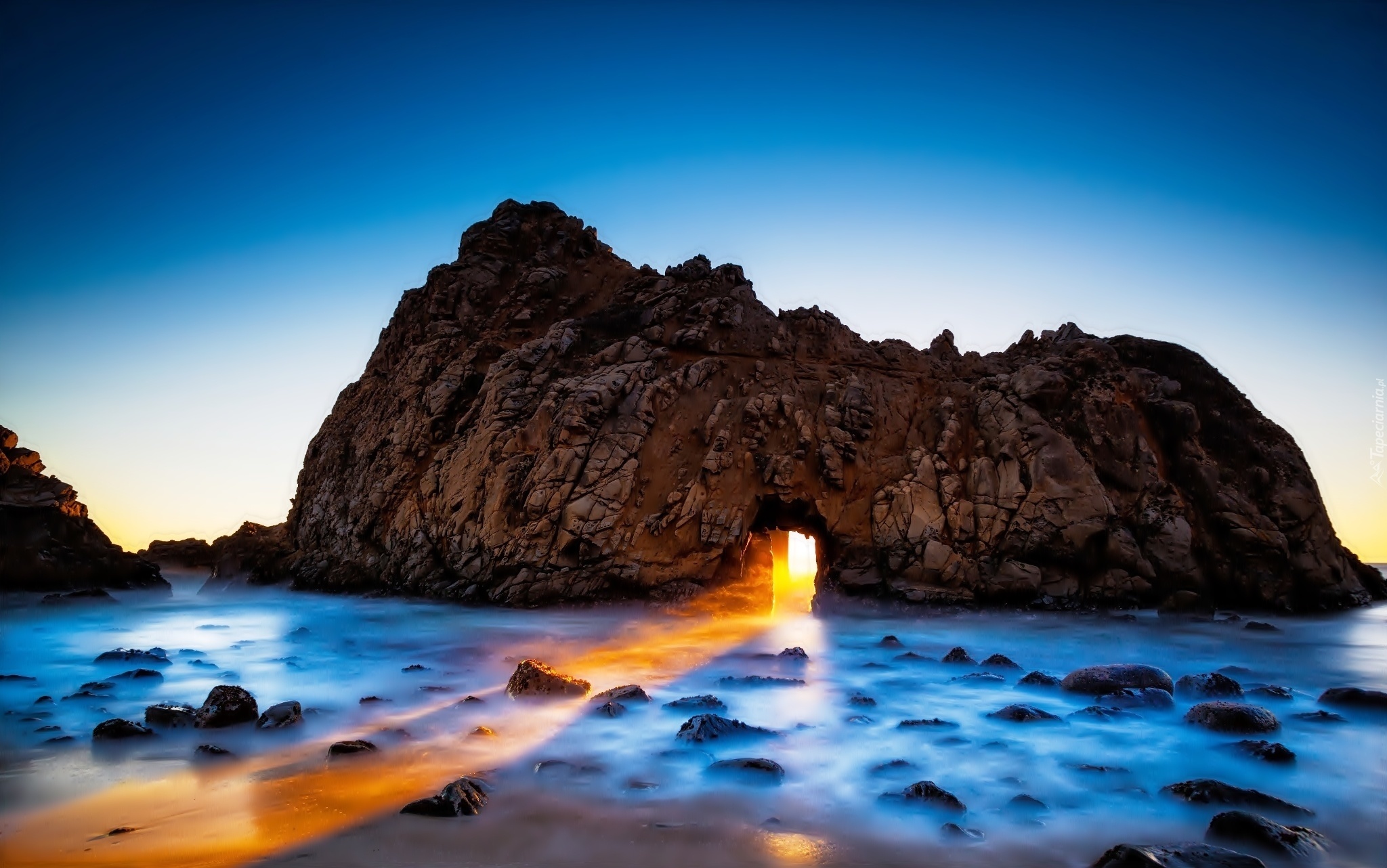 Edytor tapety: Morze, Skały, Przebijające Światło, Kalifornia