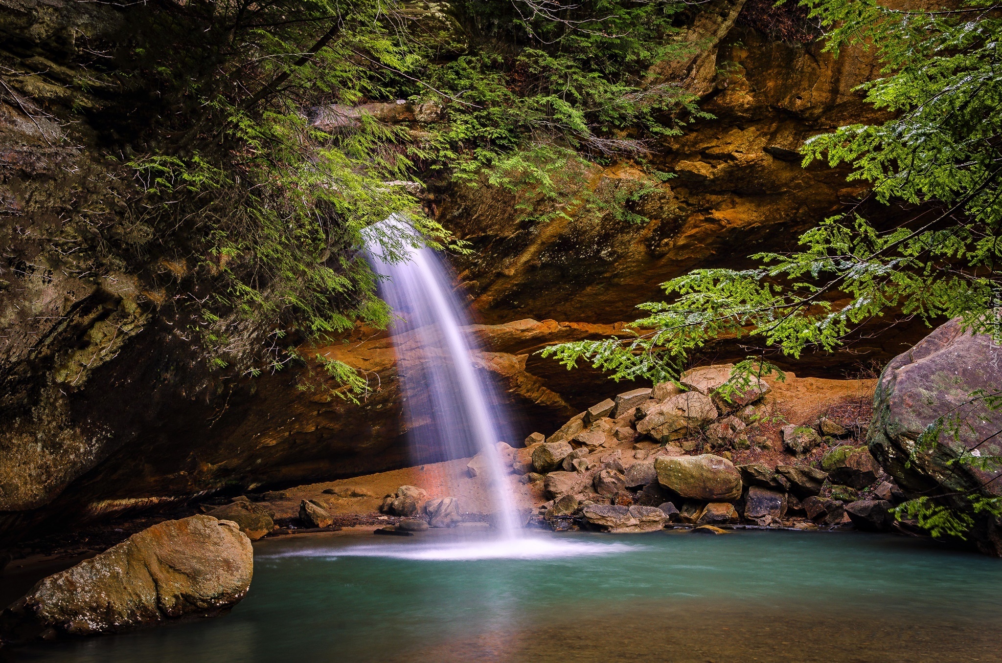 Edytor tapety: Skały, Wodospad, Las