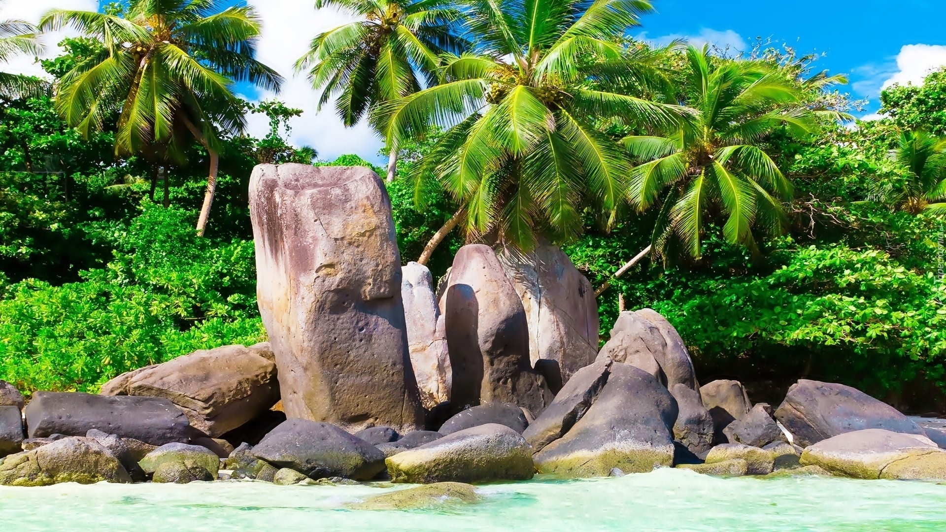 Edytor tapety: Morze, Plaża, Kamienie, Palmy