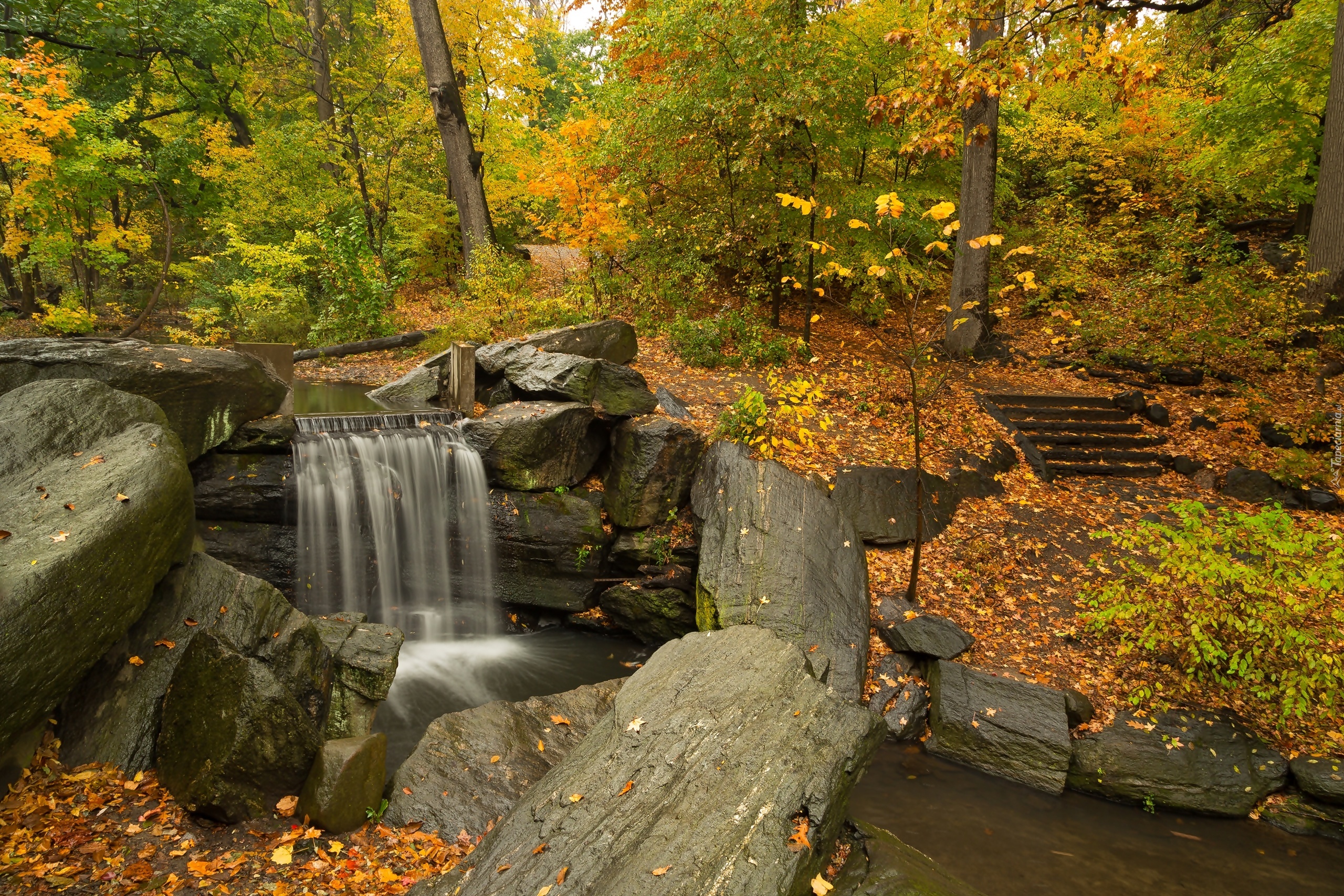 Edytor tapety: Park, Jesień, Kamienie, Rzeczka ,Wodospad