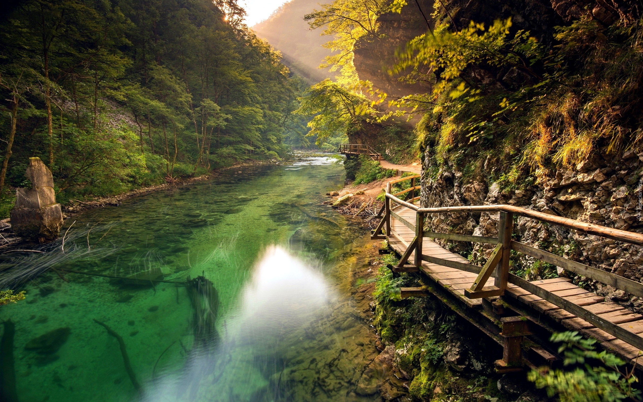 Edytor tapety: Rzeka, Las, Przejście, Przebijające Światło, Słowenia