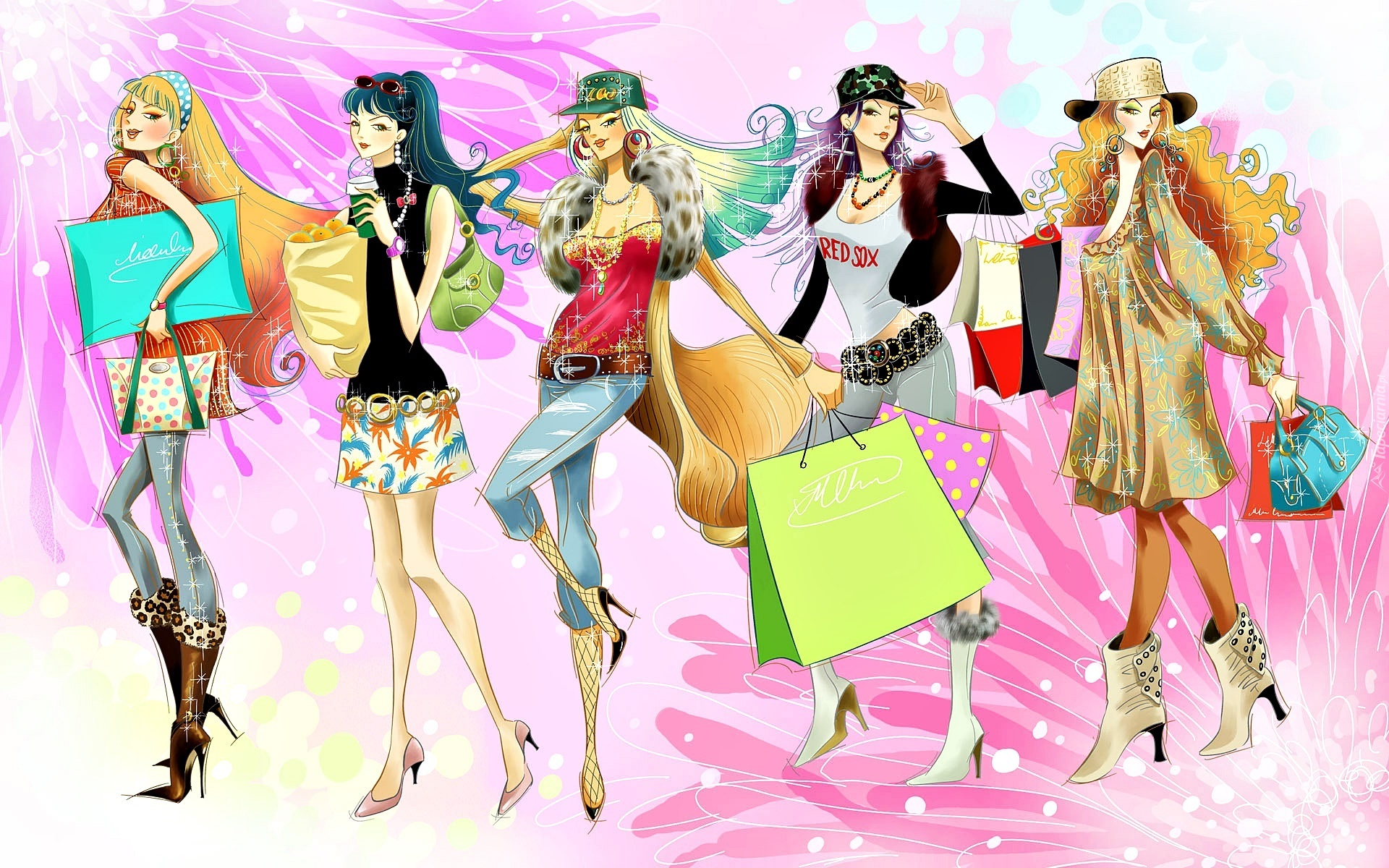 Edytor tapety: Moda i Styl, Modelki, Kolorowe, Stroje, Rysunek