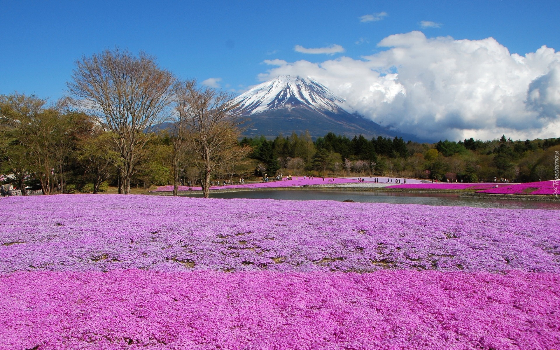 Edytor tapety: Góra, Fuji, Pole, Kwiatów, Wulkan