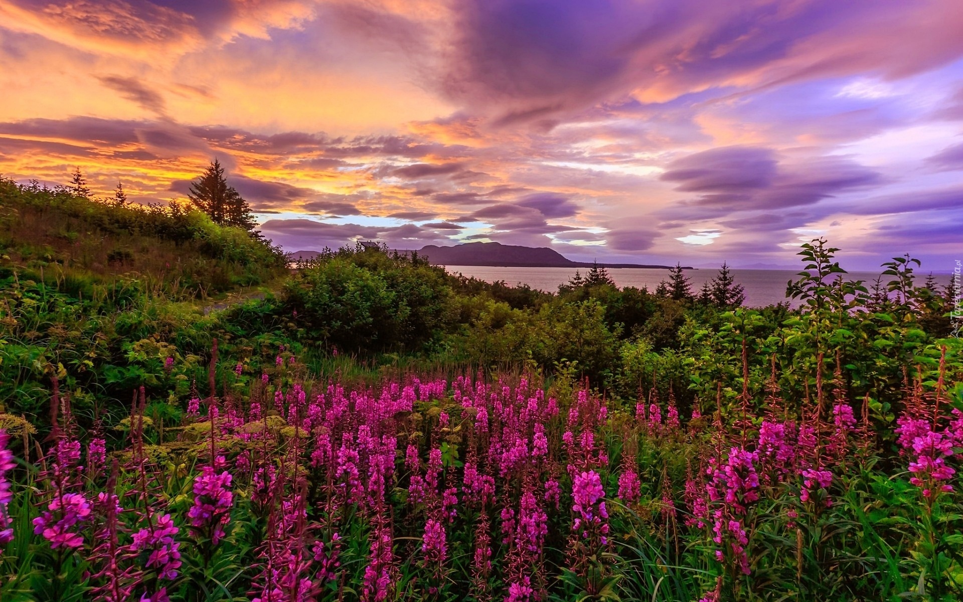 Edytor tapety: Zachód, Słońca, Przyroda, Rośliny, Kwiaty