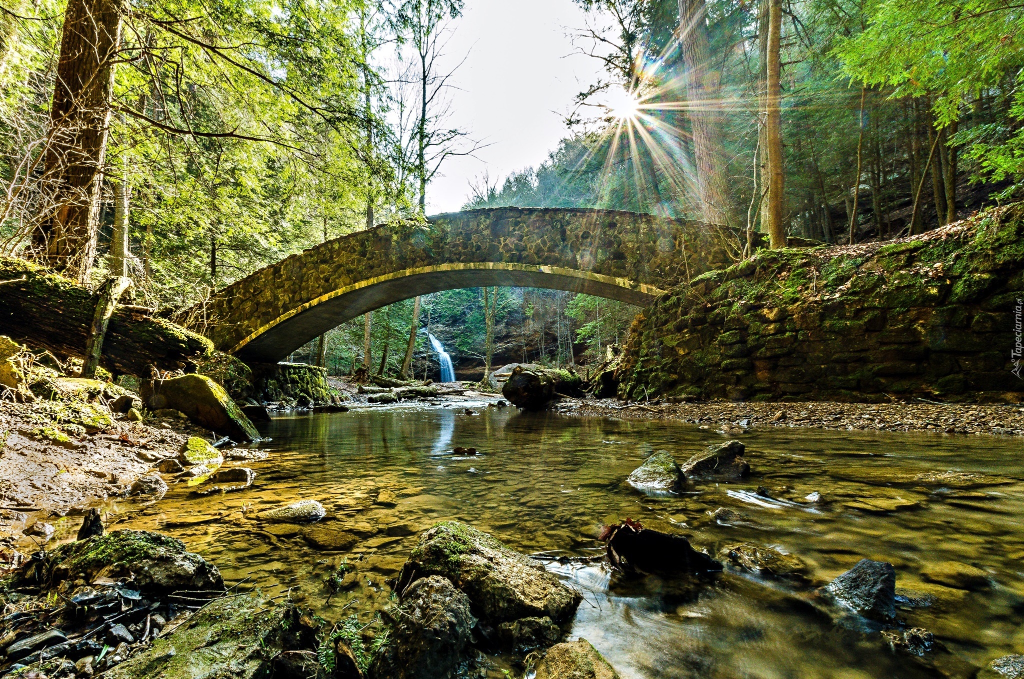 Edytor tapety: Rzeka, Kamienie, Most, Promienie Słońca