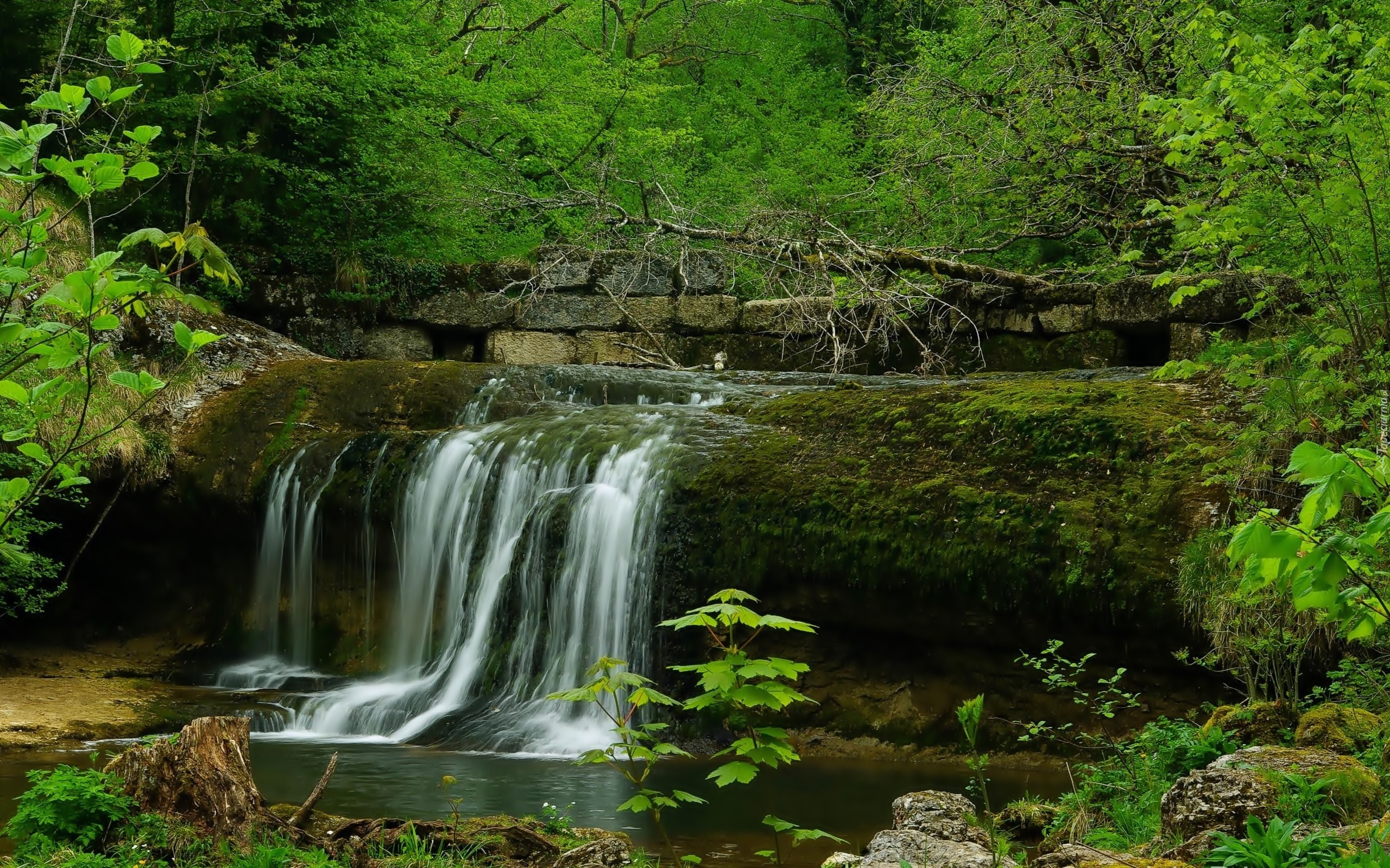 Edytor tapety: Las, Rzeka, Tama, Drzewa, Kamienie, Rośliny
