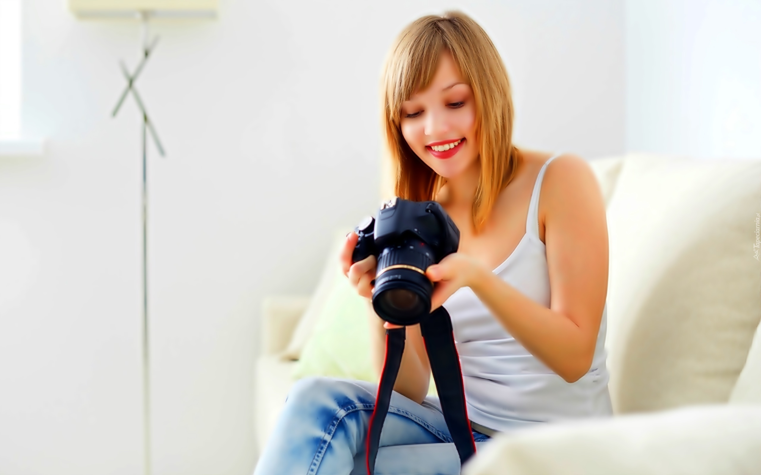 Edytor tapety: Uśmiechnięta, Dziewczyna, Makijaż, Aparat, Fotograficzny