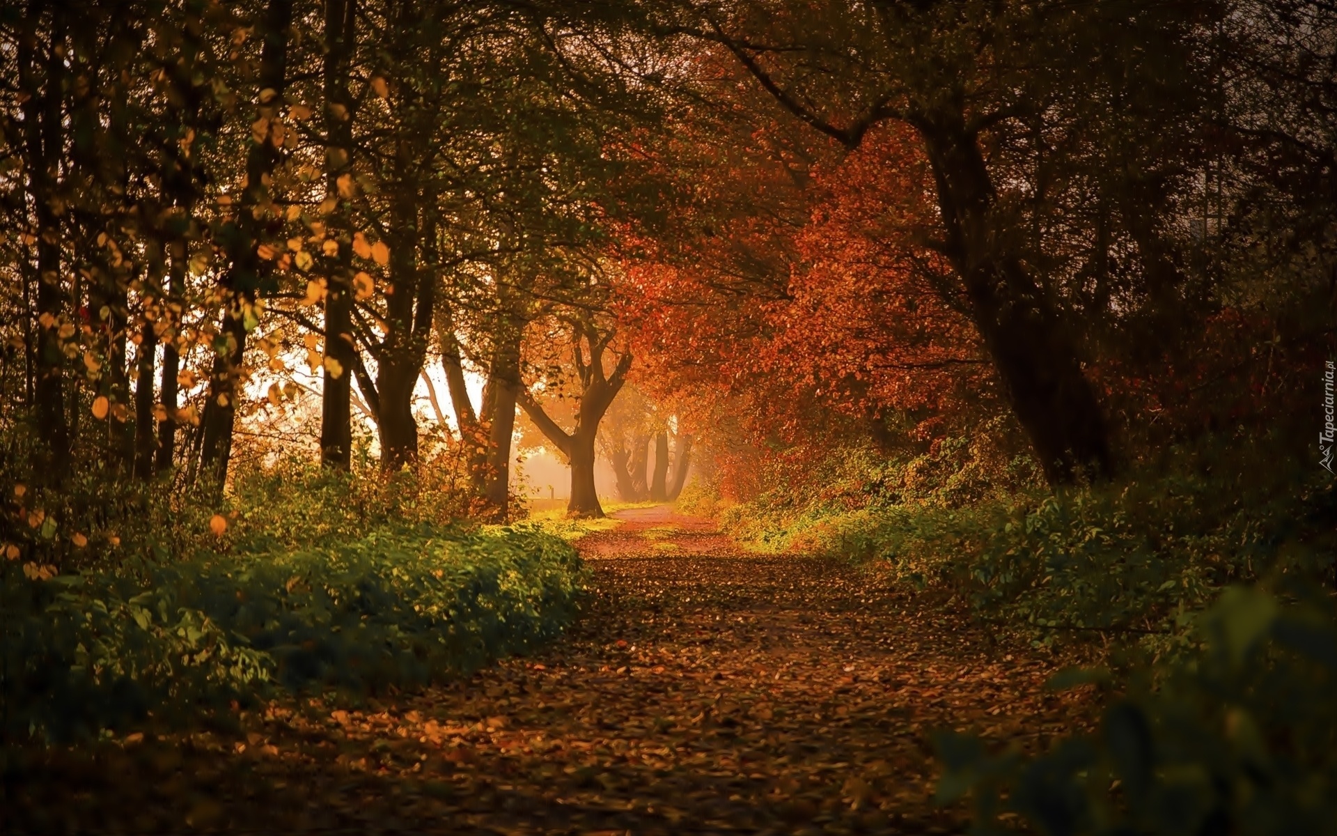 Edytor tapety: Park, Aleja, Drzewa, Liście, Jesień