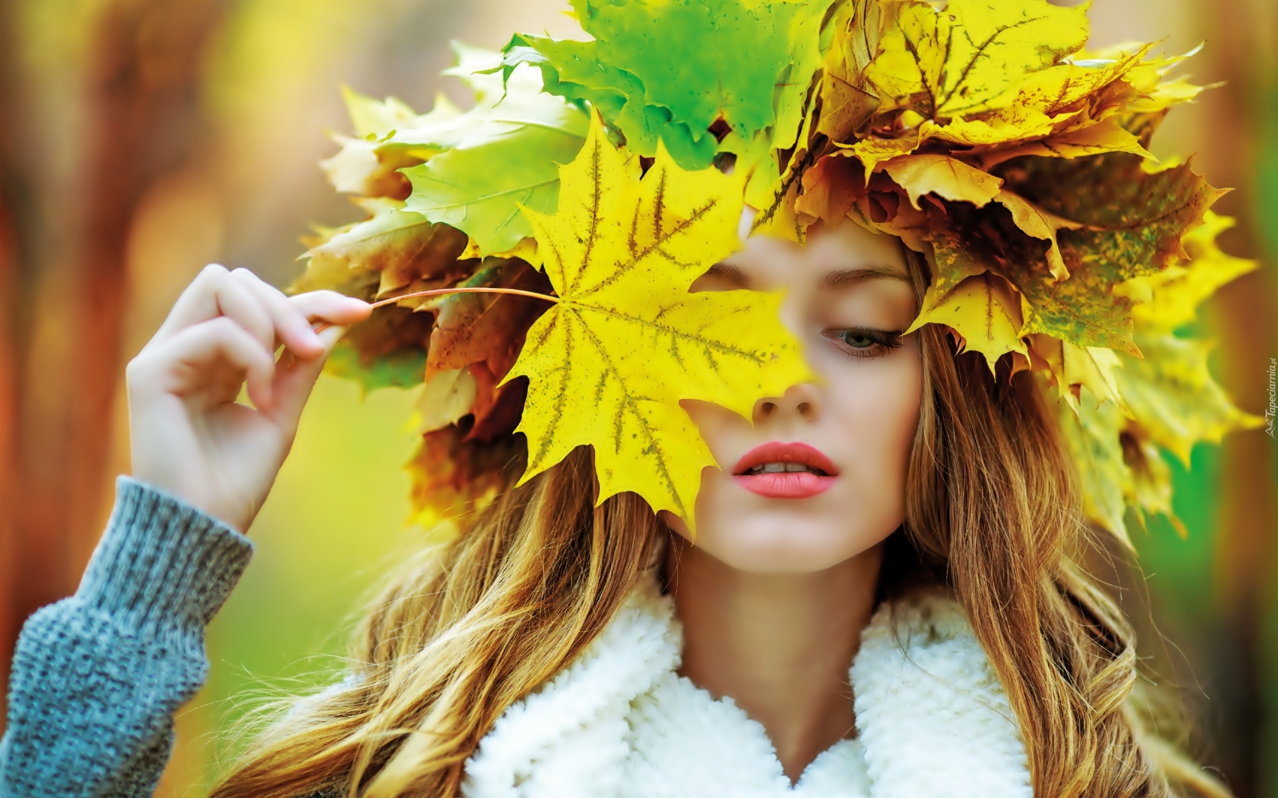 Edytor tapety: Dziewczyna, Makijaż, Ozdoba, Z, Jesiennych, Liści, Park