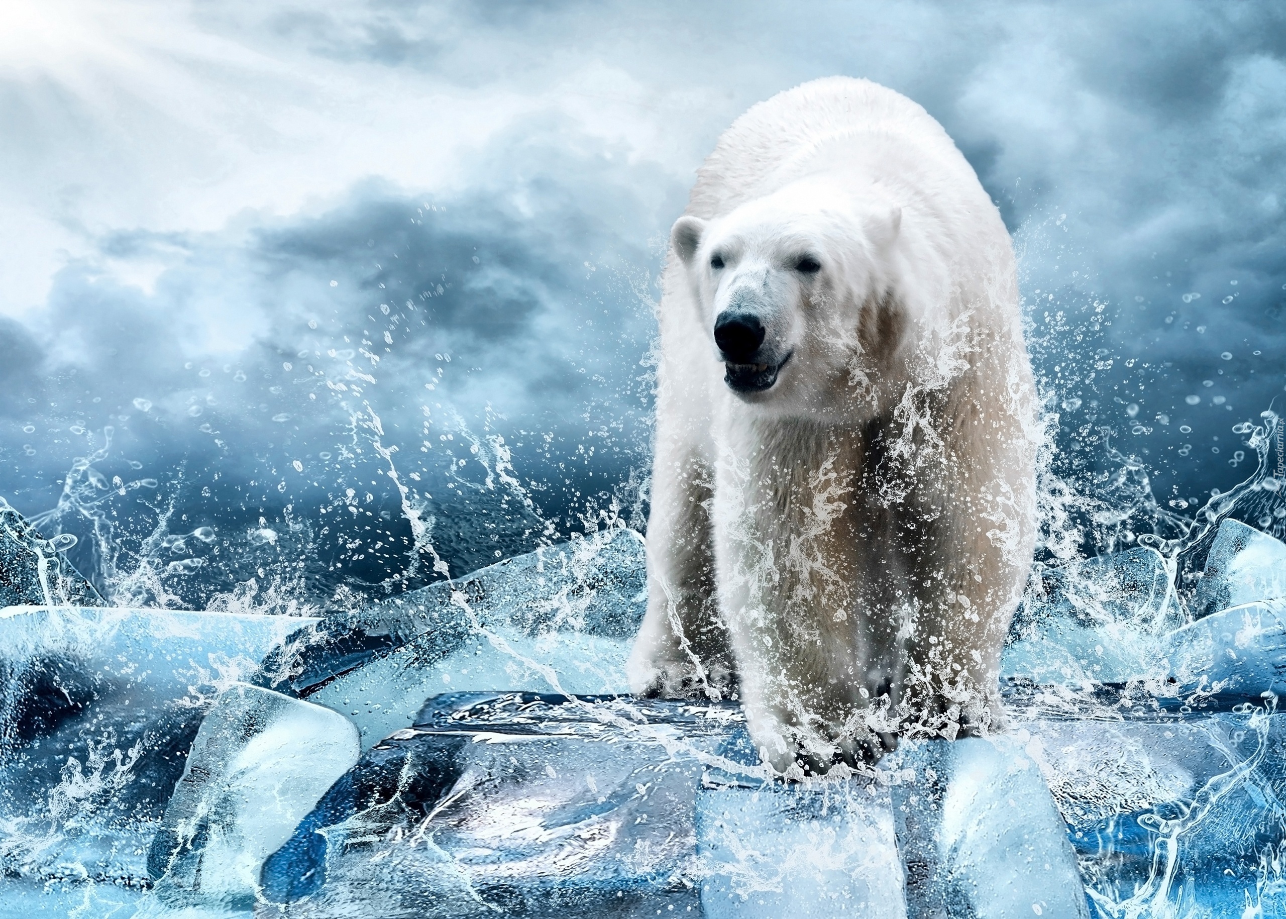 Edytor tapety: Niedźwiedź, Polarny, Rozbryzgująca, Woda