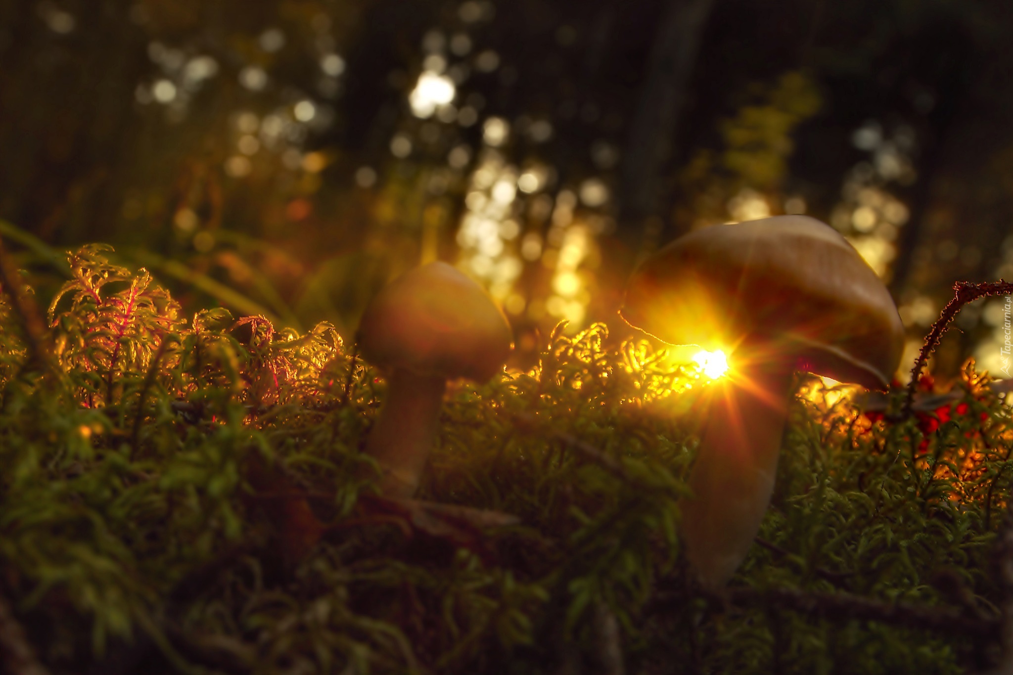 Edytor tapety: Grzyby, Ściółka, Las, Zachód Słońca